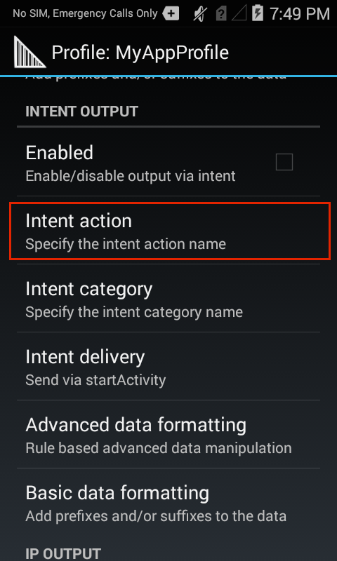 When combined, these two values are like a "channel" to which an app can listen for intents that use the same combination, filtering out "noise" from other intents that use different value pairs. Once these values are known, DataWedge Intent Output must be set to match.