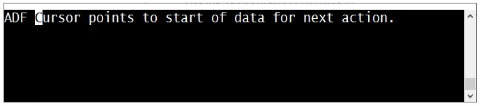 The ADF Interpreter uses a cursor to mark the next character to be processed by the next action. The image below shows a “data terminal” screen, and the cursor is on the “C” character in the word “Cursor”