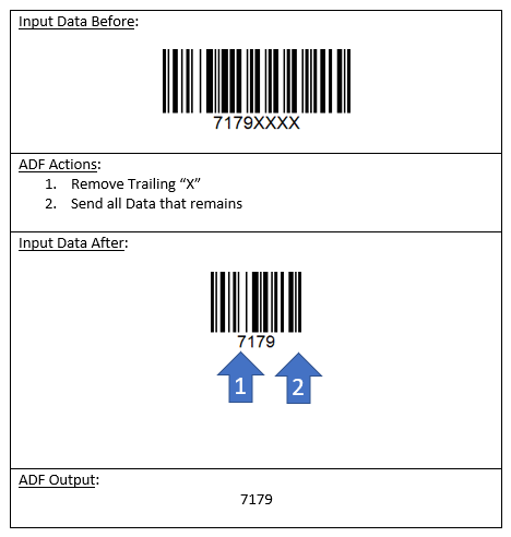 The following are examples of what could be programmed in an ADF rule and the types of barcodes that would cause the rule to apply.