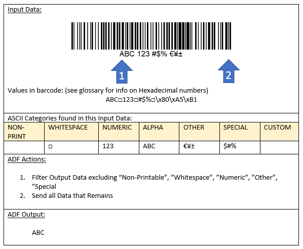 ADF has an action called “Replace Non-Printable” that substitutes all non-printable characters with a single ASCII character, such as a period “.”. But what if you want to see what the specific non-printable characters are in the barcodes that you scan.