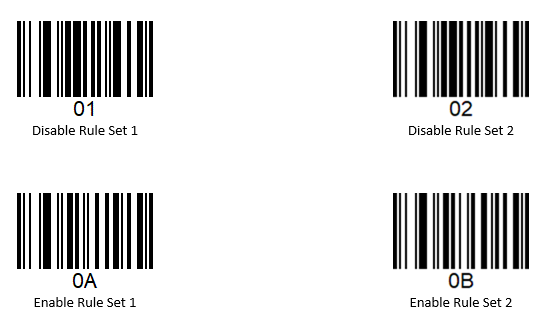 This can be useful if the user wants to reconfigure the scanner differently depending on the scanner's use case. ADF Rules can be assigned to a Rule Set number assigned to each use case. And when the User Defined barcode is scanned, ADF can enable or disable the desired sets of rules and prepare the scanner for it's use.
