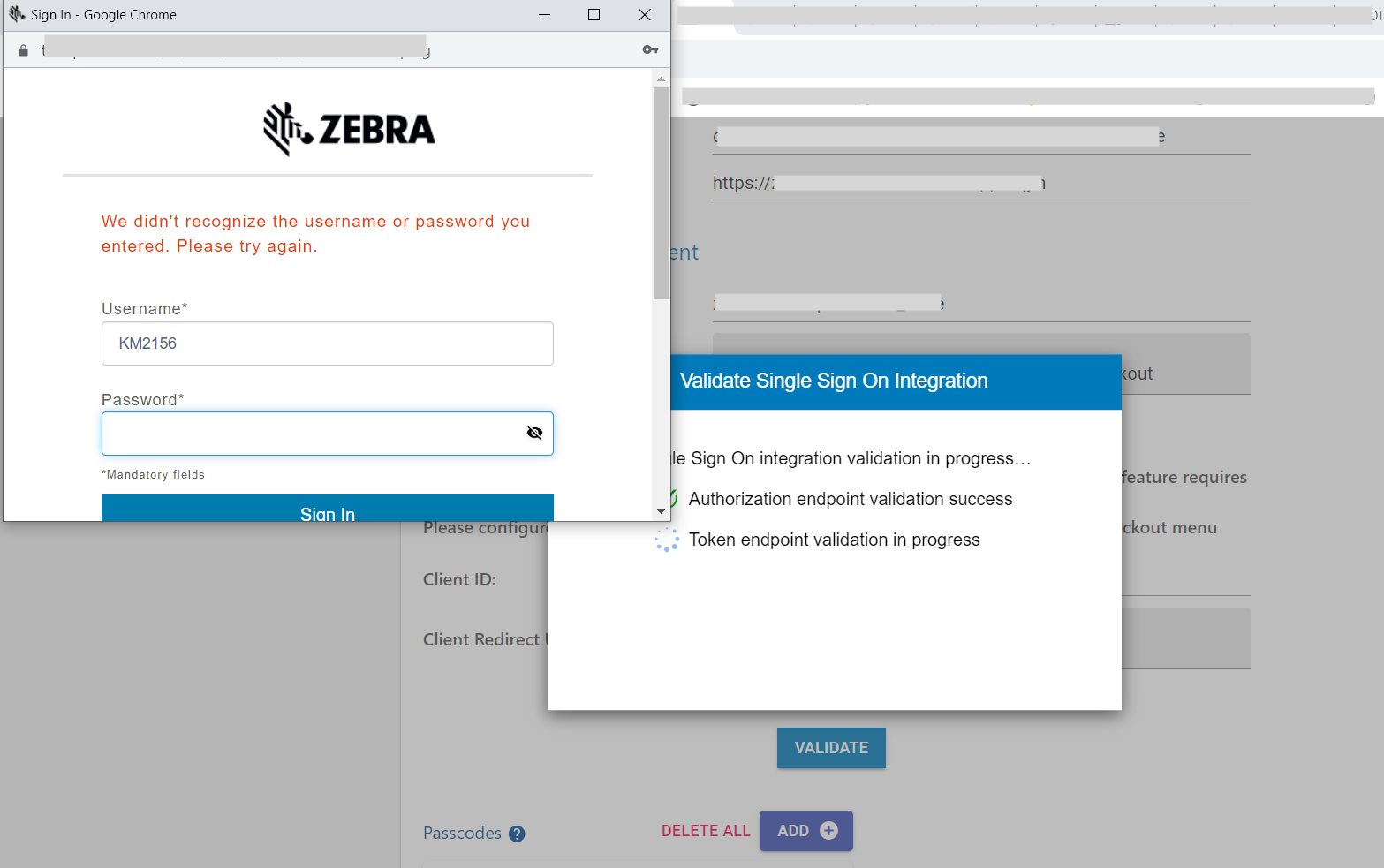 • When attempting to validate SSO, I receive an error that the username or password is not recognized. What could be causing this error?