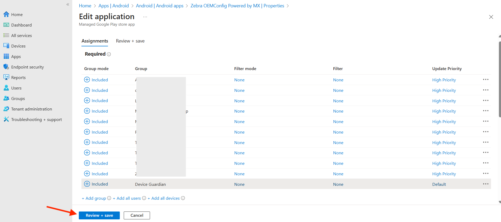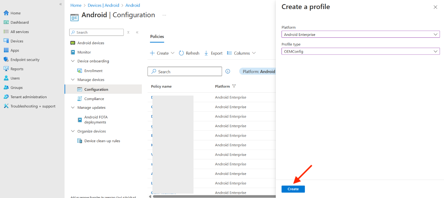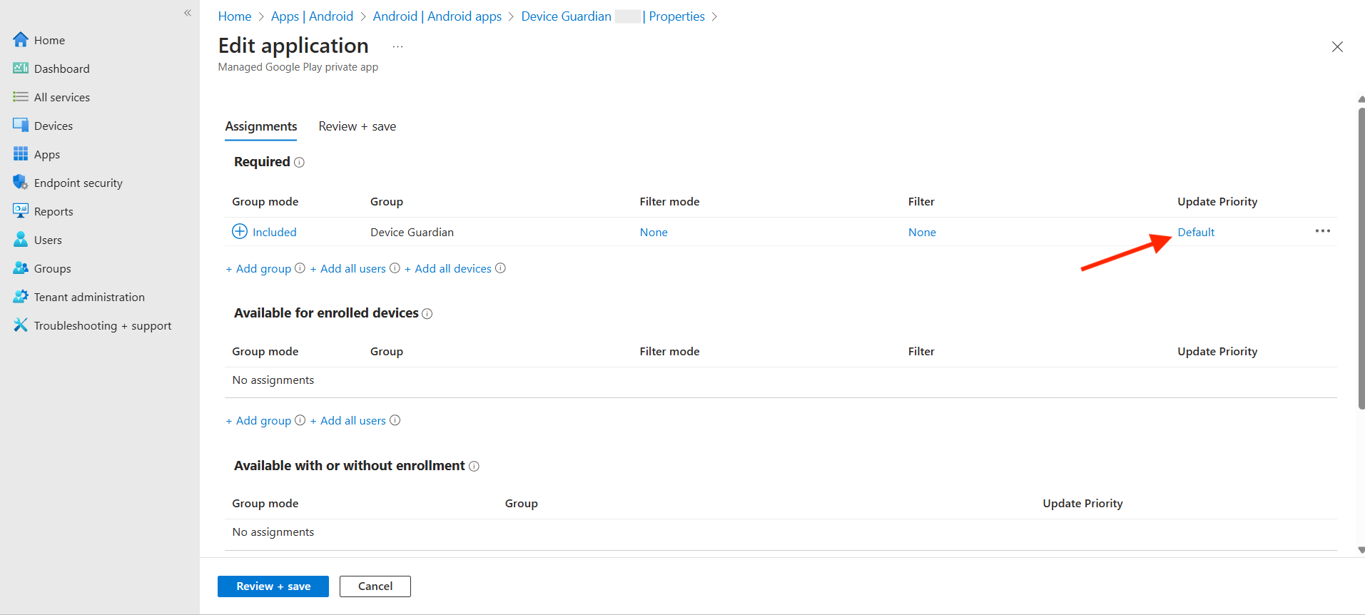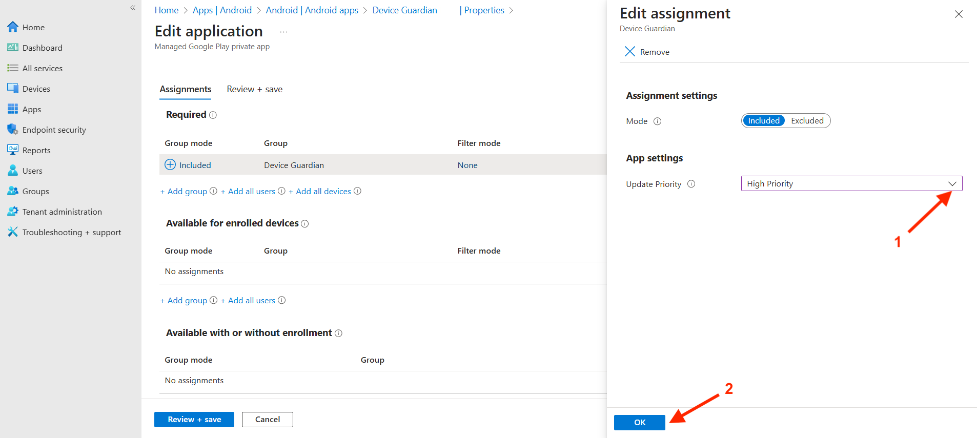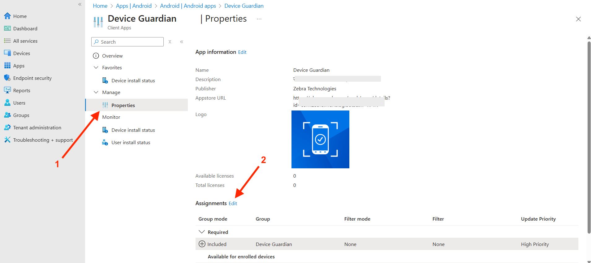 Follow these steps to use Microsoft Intune to install Device Guardian from the Google Play Store and apply a policy that enrolls the device with the Device Guardian server.