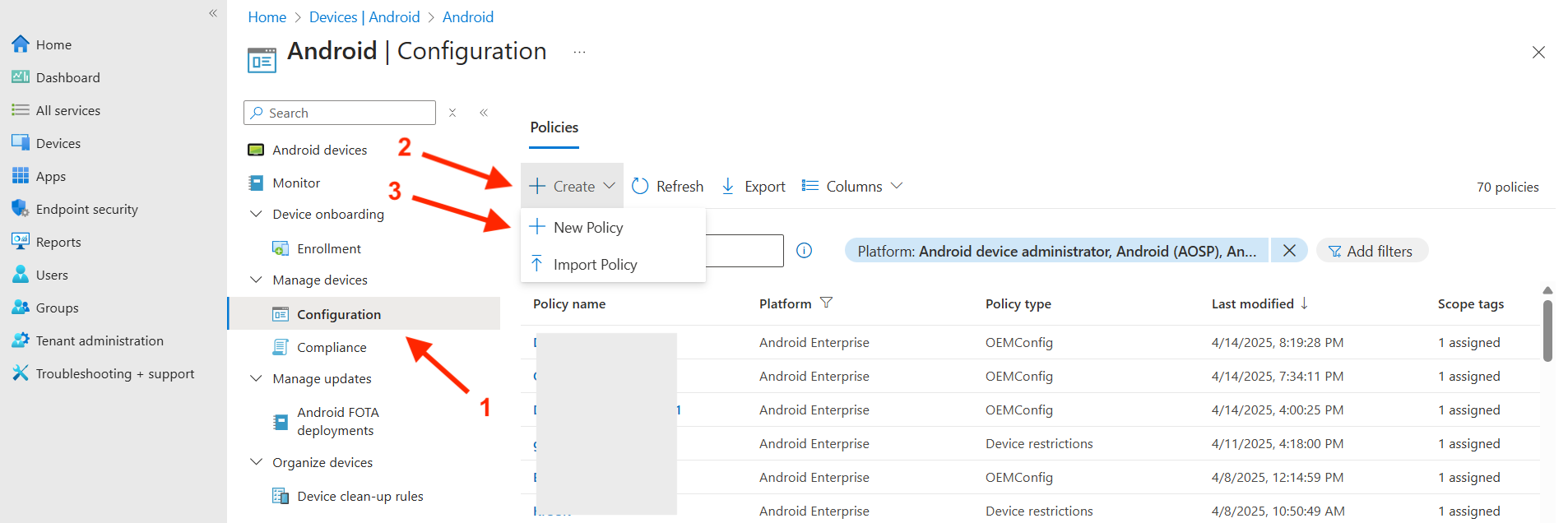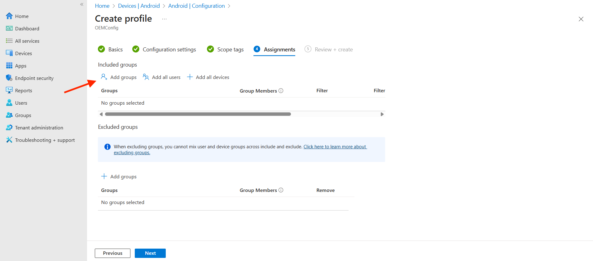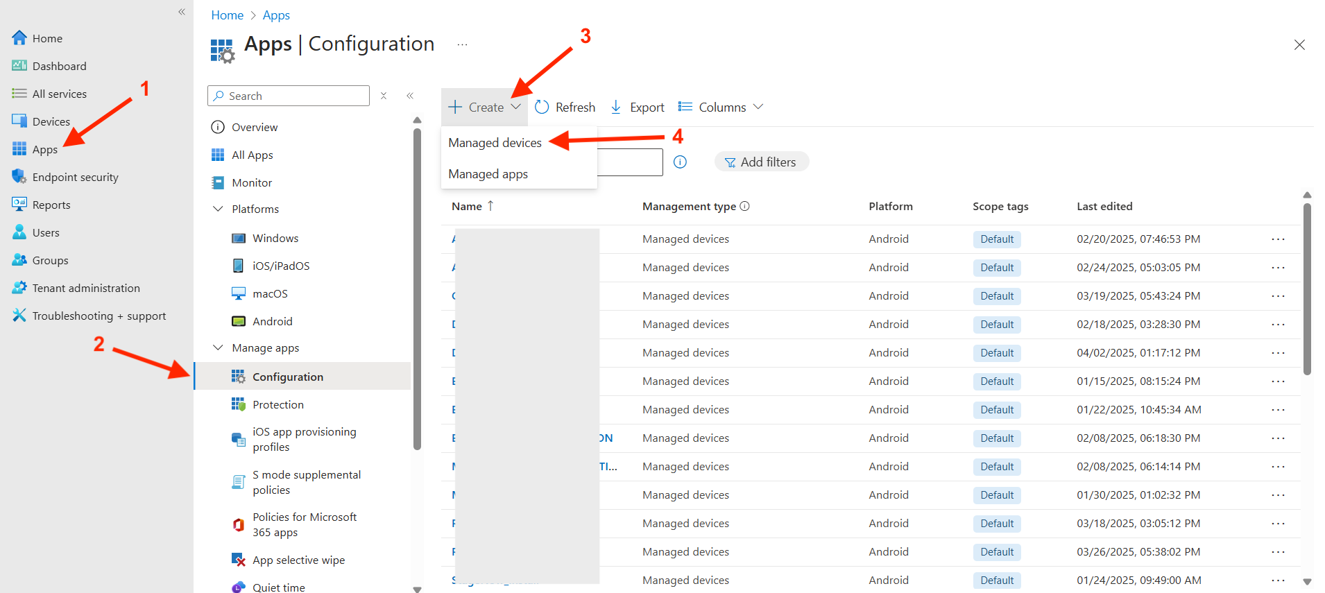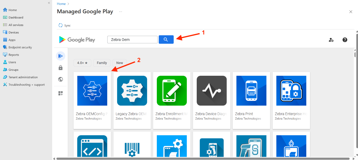 Follow these steps to use Microsoft Intune to install Device Guardian from the Google Play Store and apply a policy that enrolls the device with the Device Guardian server.