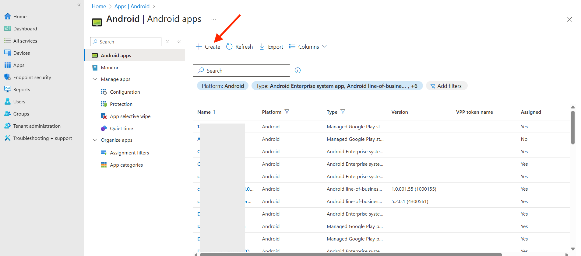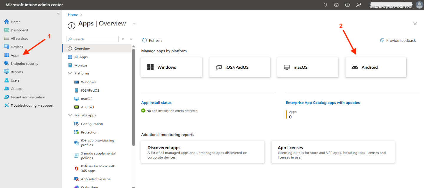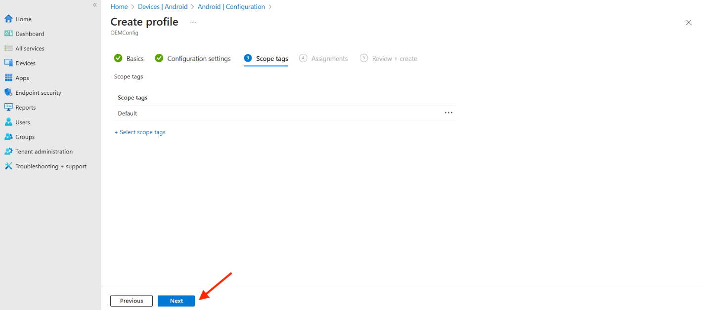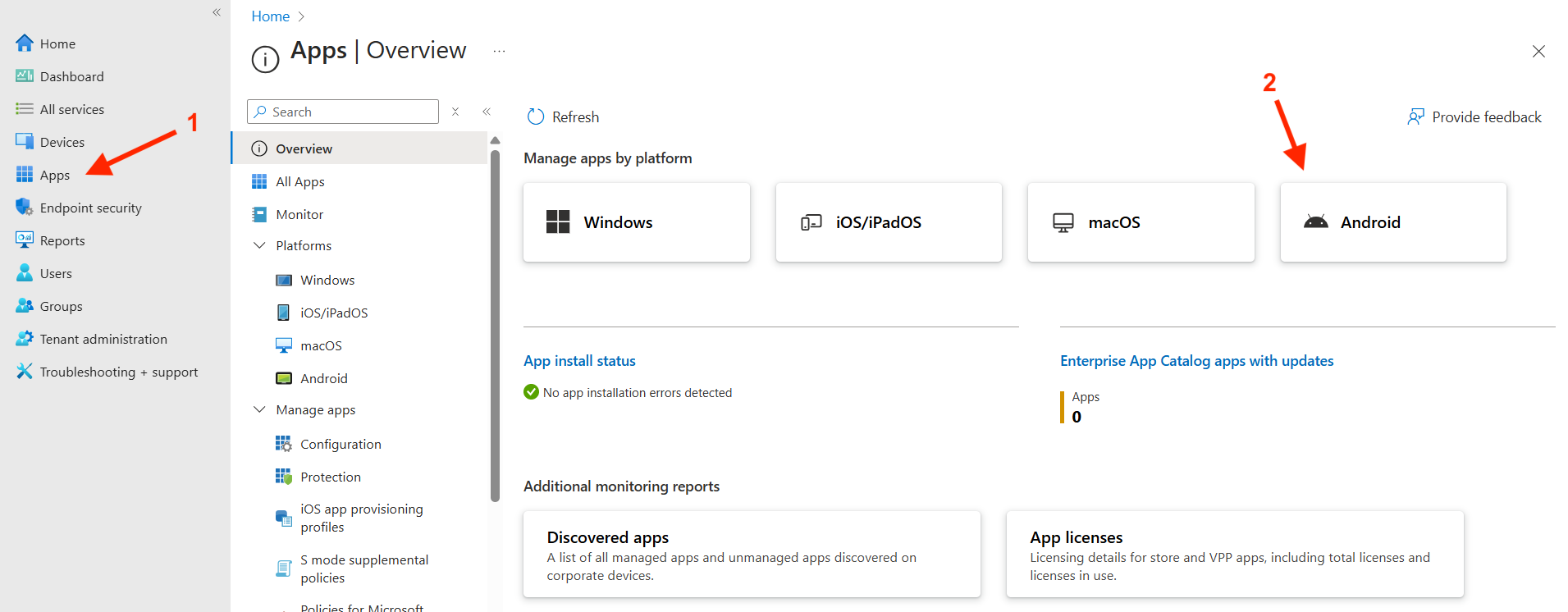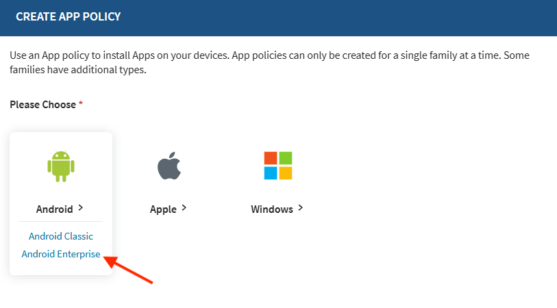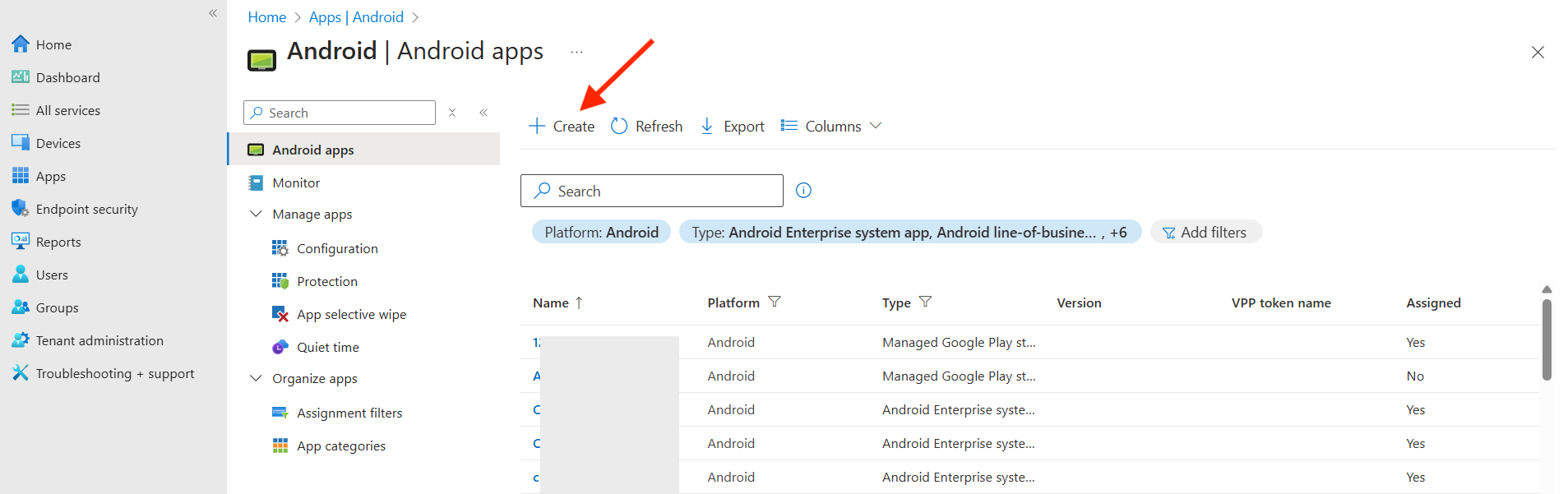 Follow these steps to use Microsoft Intune to install Device Guardian from the Google Play Store and apply a policy that enrolls the device with the Device Guardian server.