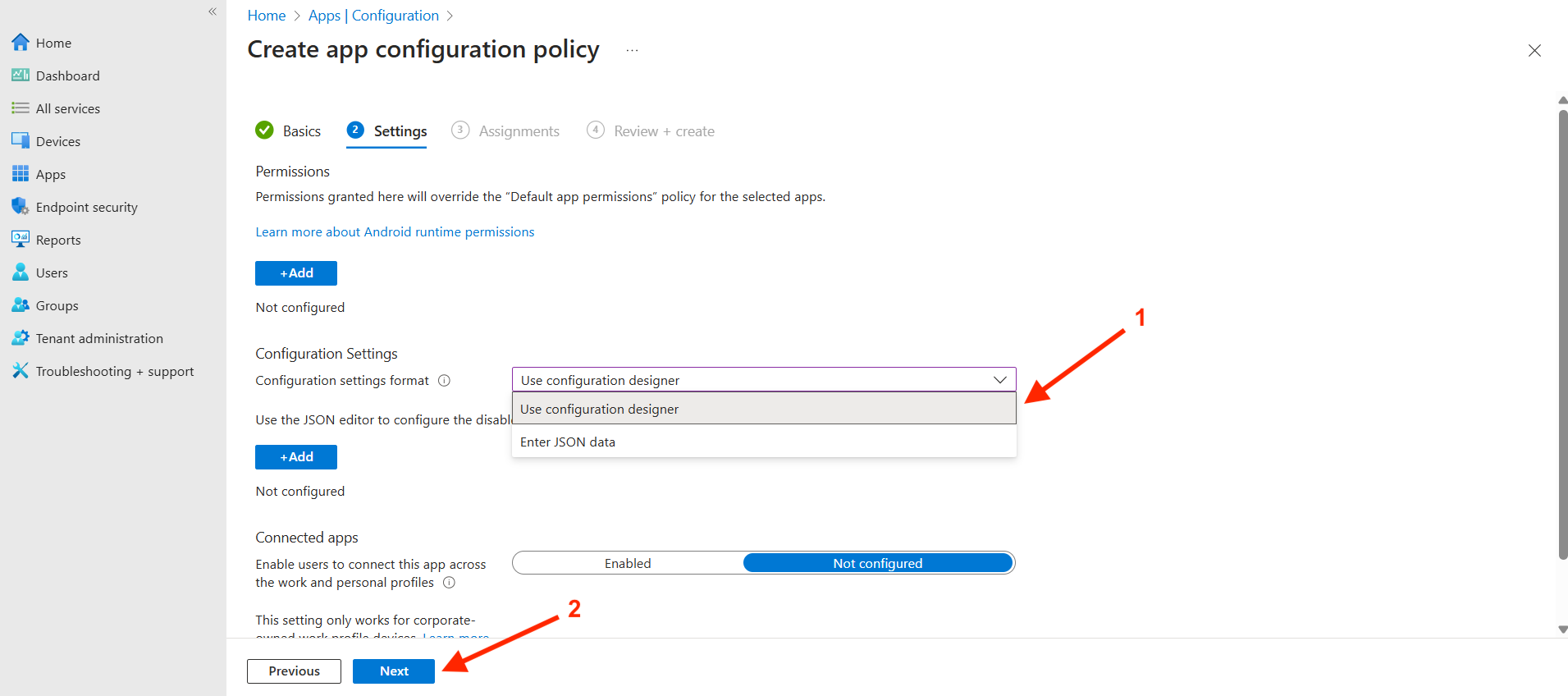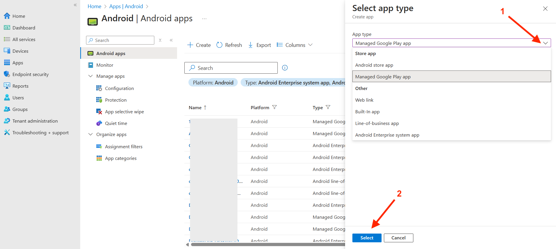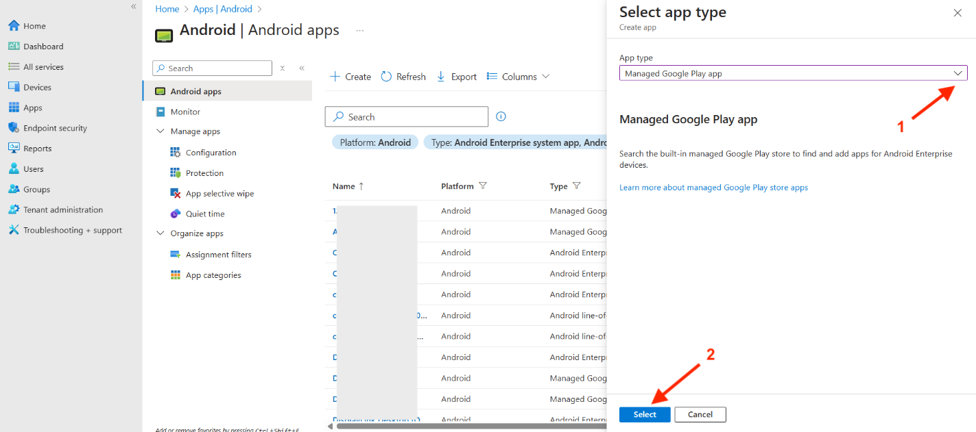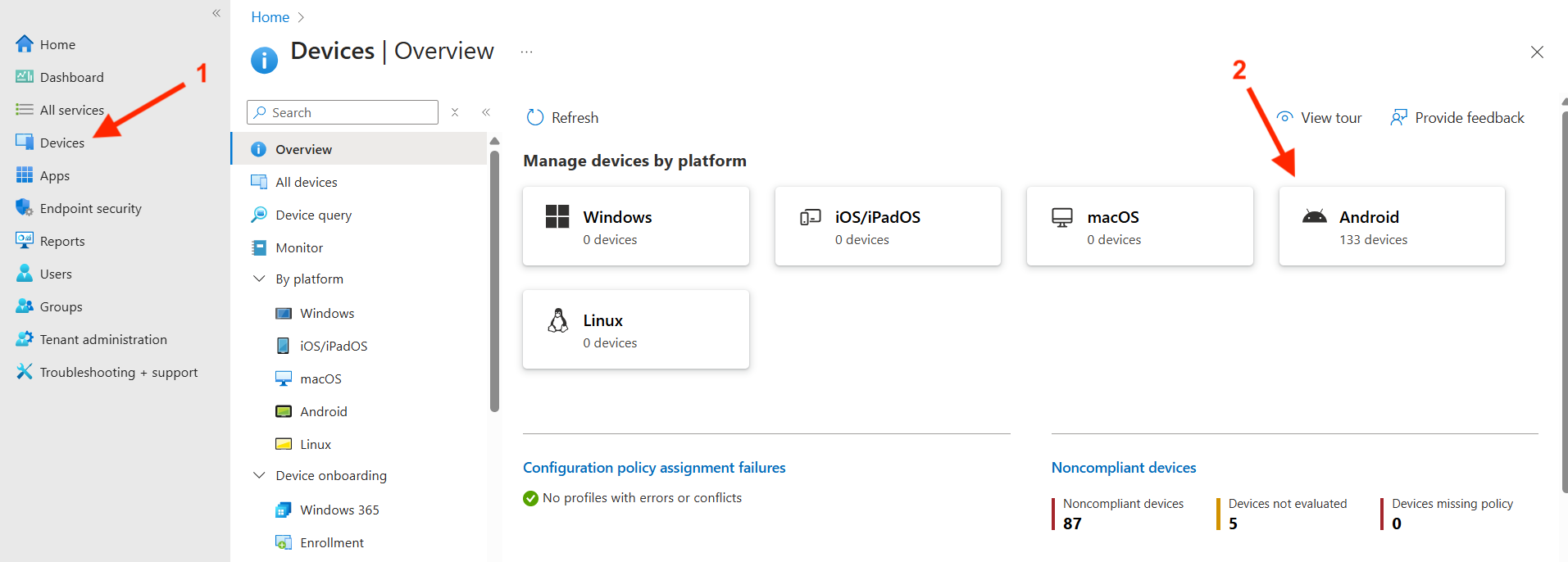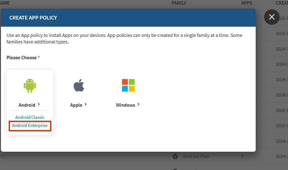 Follow these steps to use Microsoft Intune to install Device Guardian from the Google Play Store and apply a policy that enrolls the device with the Device Guardian server.