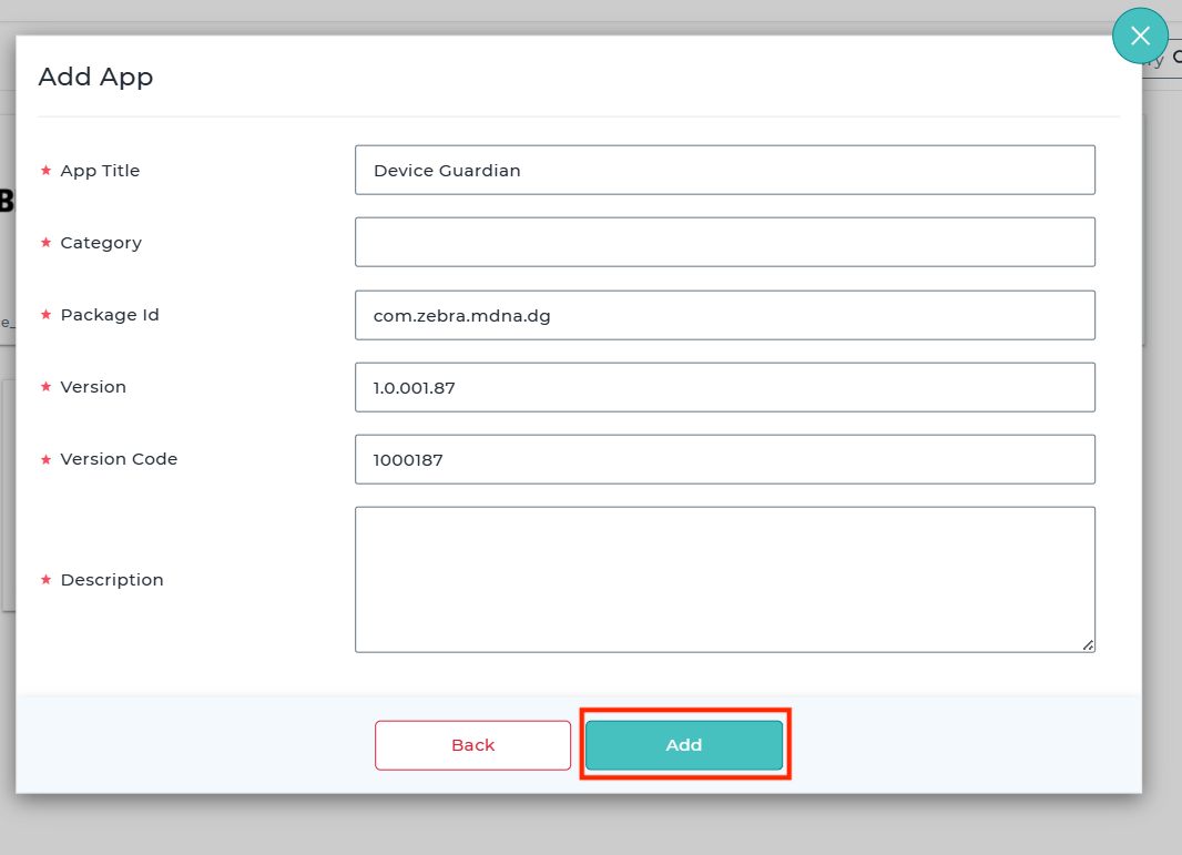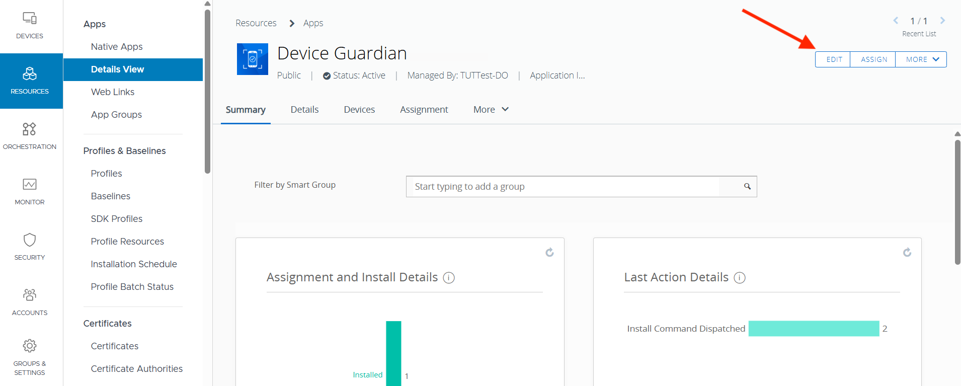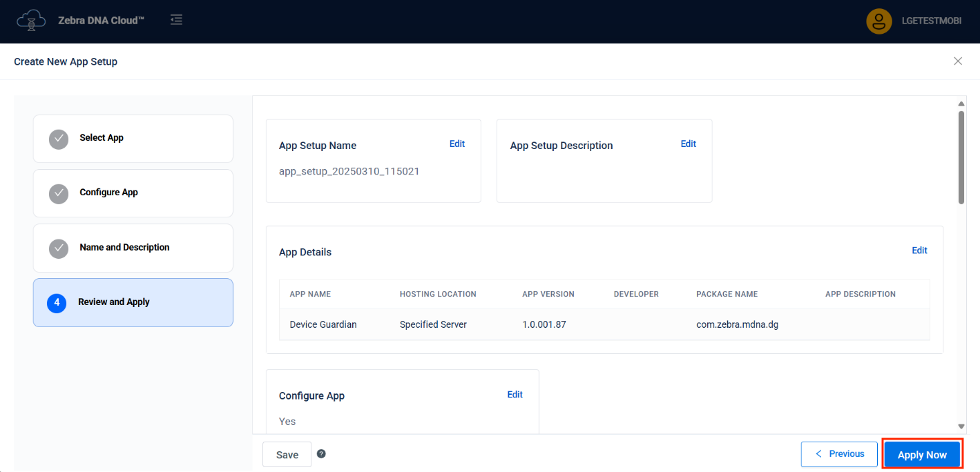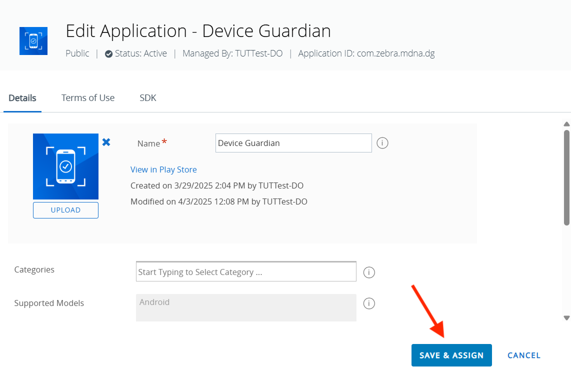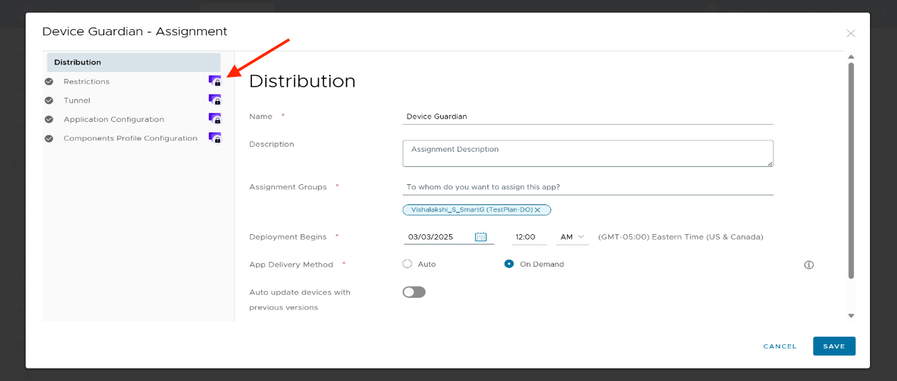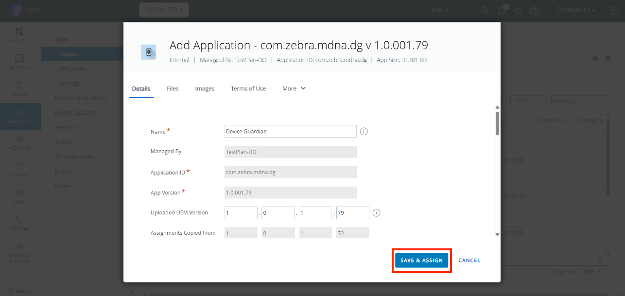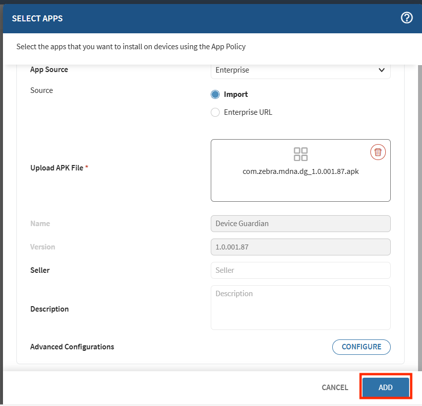 - From the dropdown, select the Device Guardian app uploaded. Click Next.
