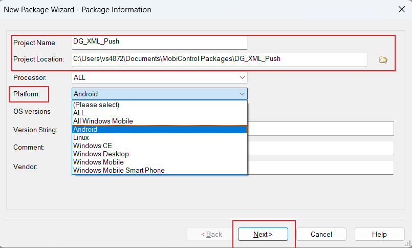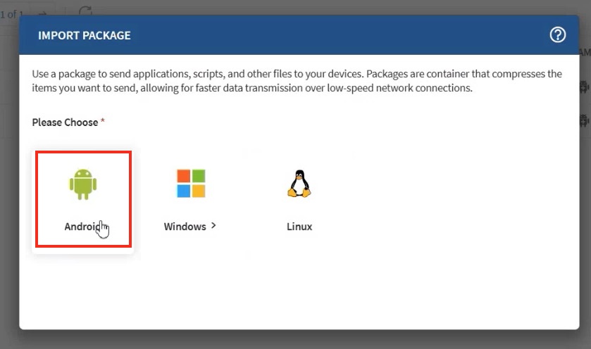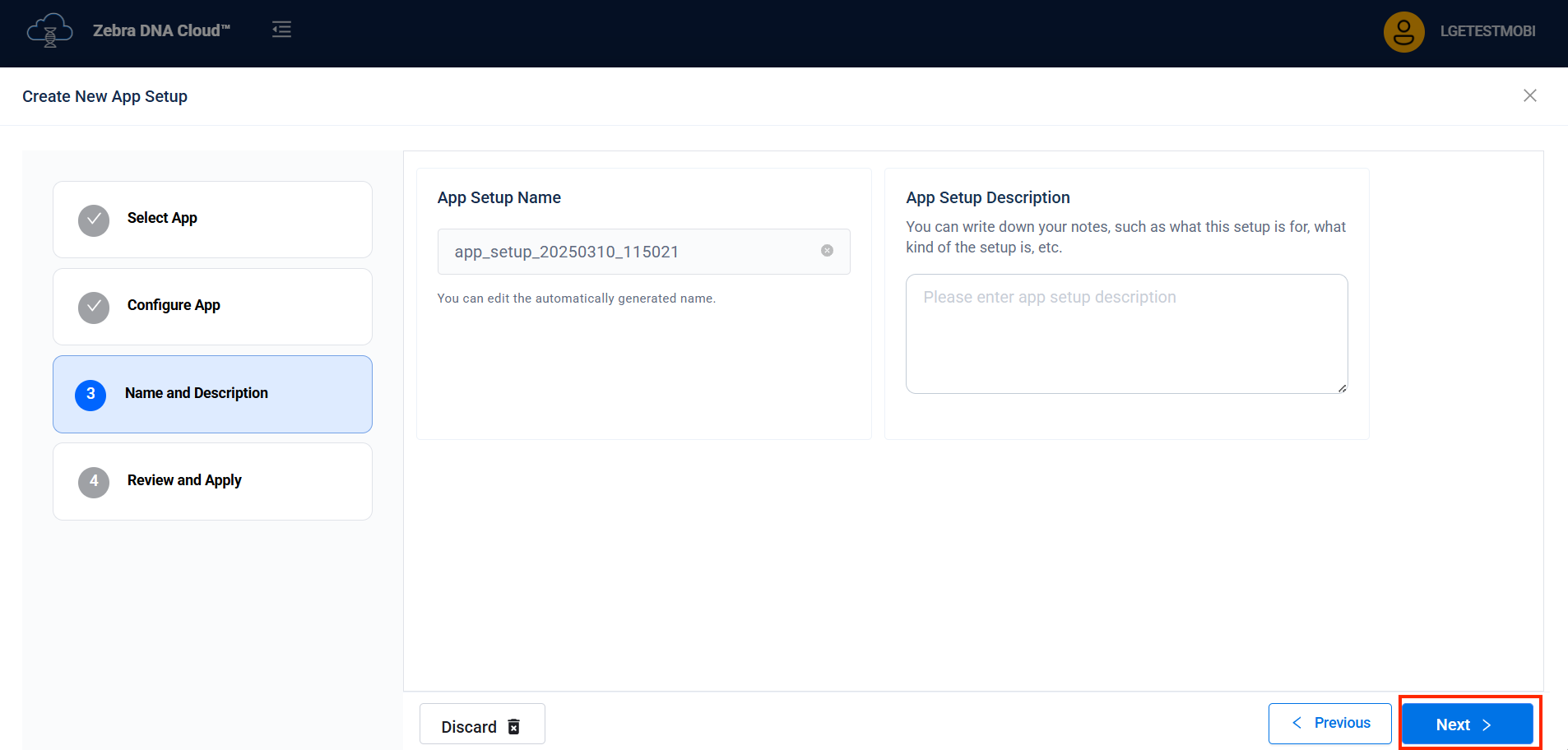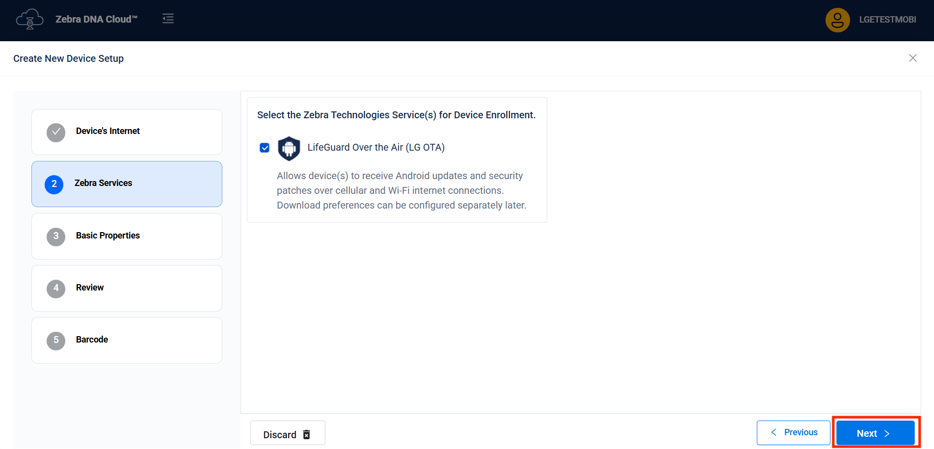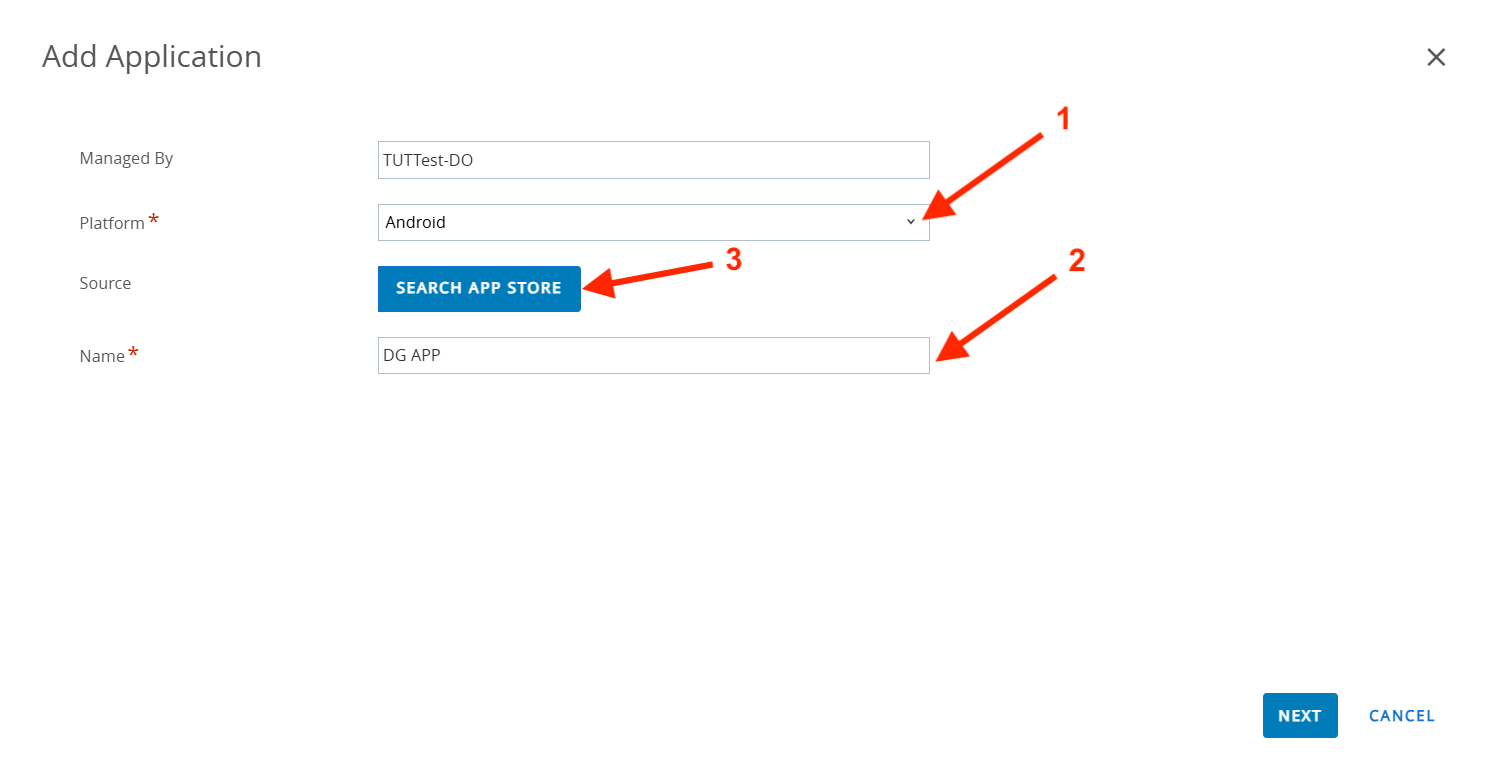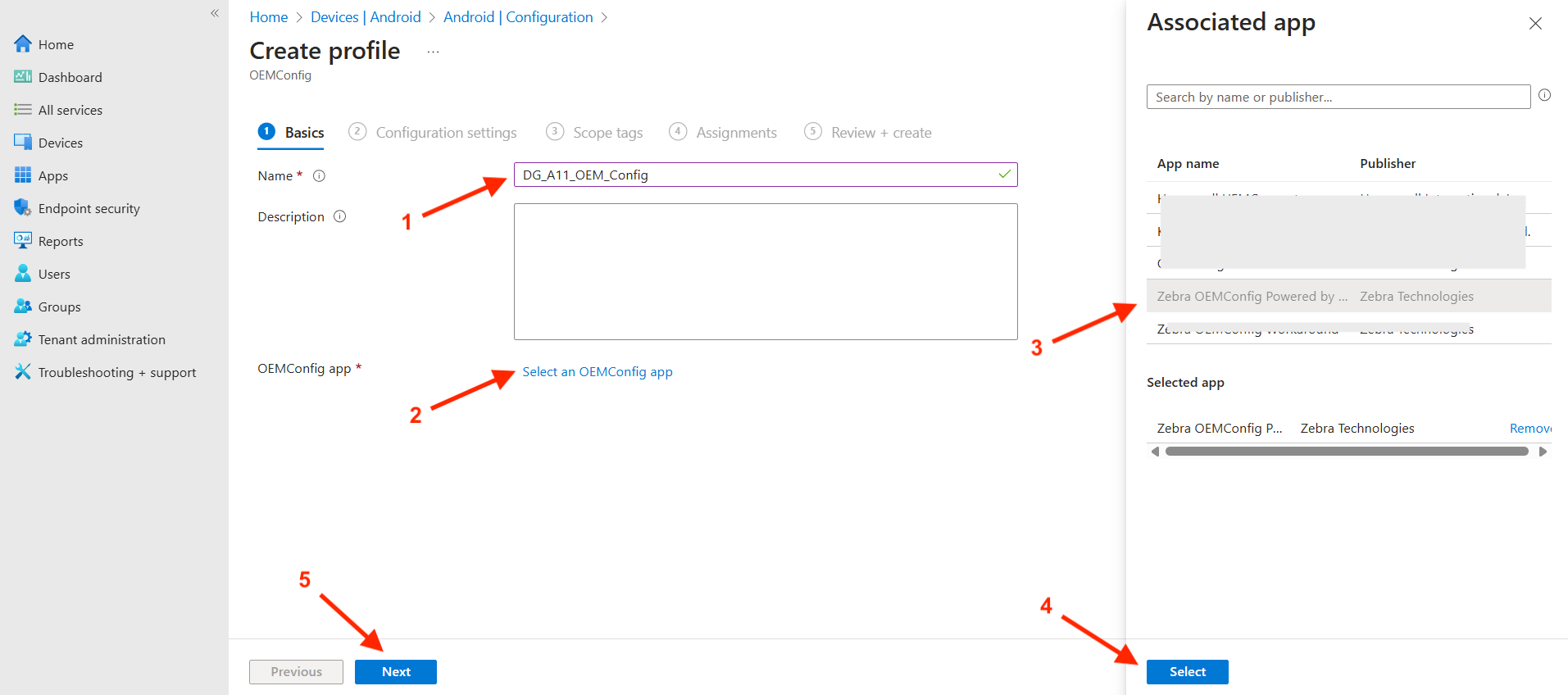 - From the dropdown, select the Device Guardian app uploaded. Click Next.
