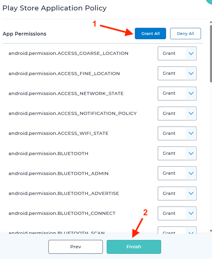 For Android 11 devices, intents must be sent to grant the necessary permissions and start Device Guardian, allowing the configurations to be applied: