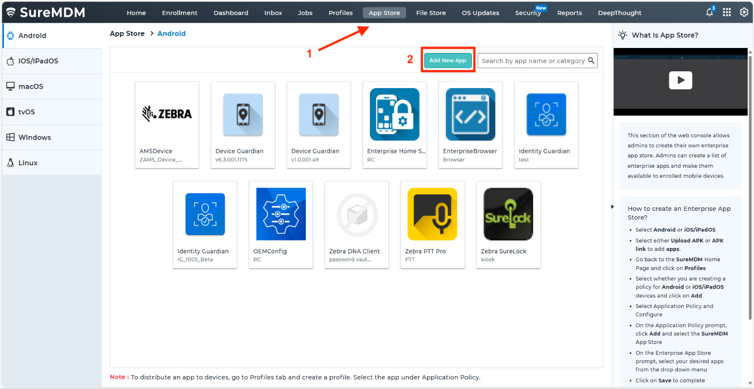 - In the 42Gears SureMDM web console, go to the Android App Store and click Add New App.