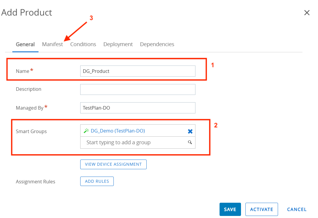 - Enter a name and assign it to the appropriate Smart Groups. Click the Manifest tab.