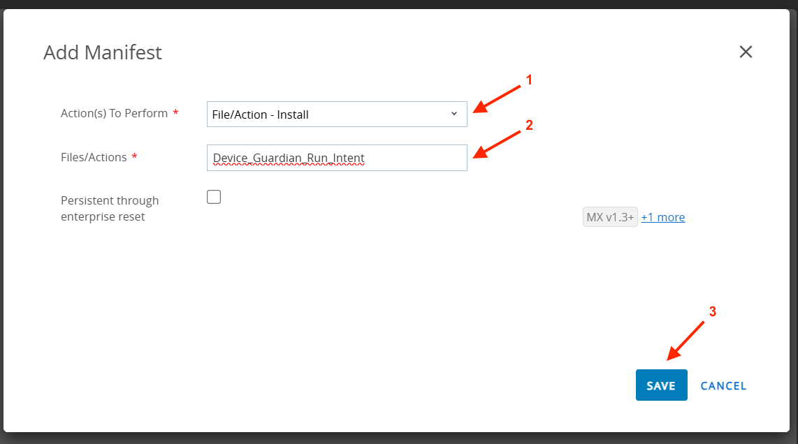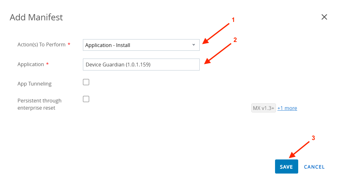 Important for Android 11: For Android 11 devices, Device Guardian must be launched after installation to apply the configurations.