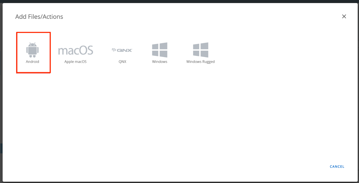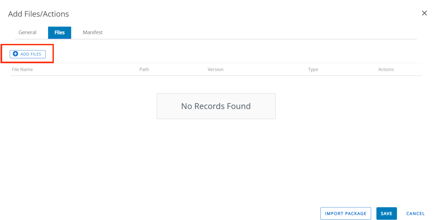 - In the Workspace ONE UEM web console, go to Orchestration > File Actions. Click Add Files/Actions.