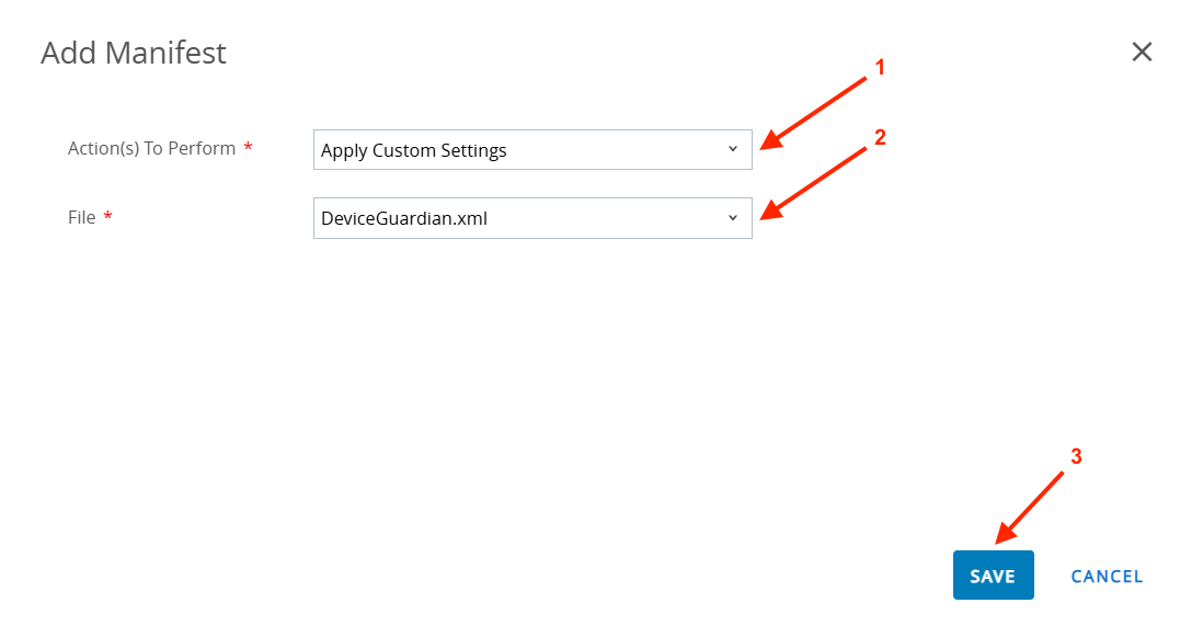 DeviceGuardian.xmldownloaded from step 1 and click Save.