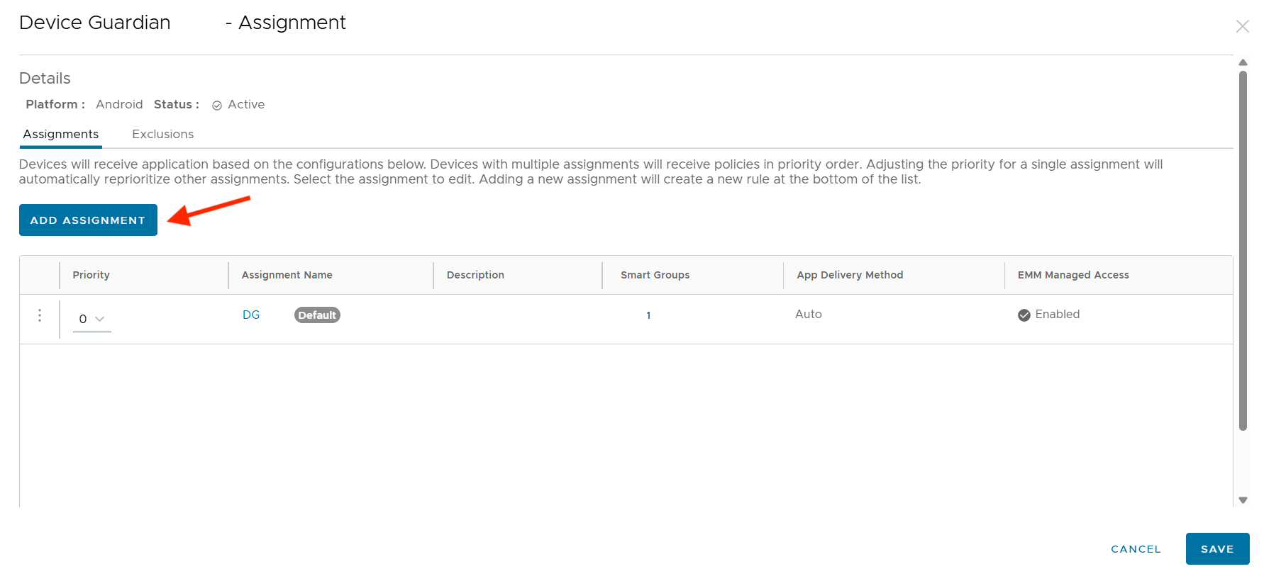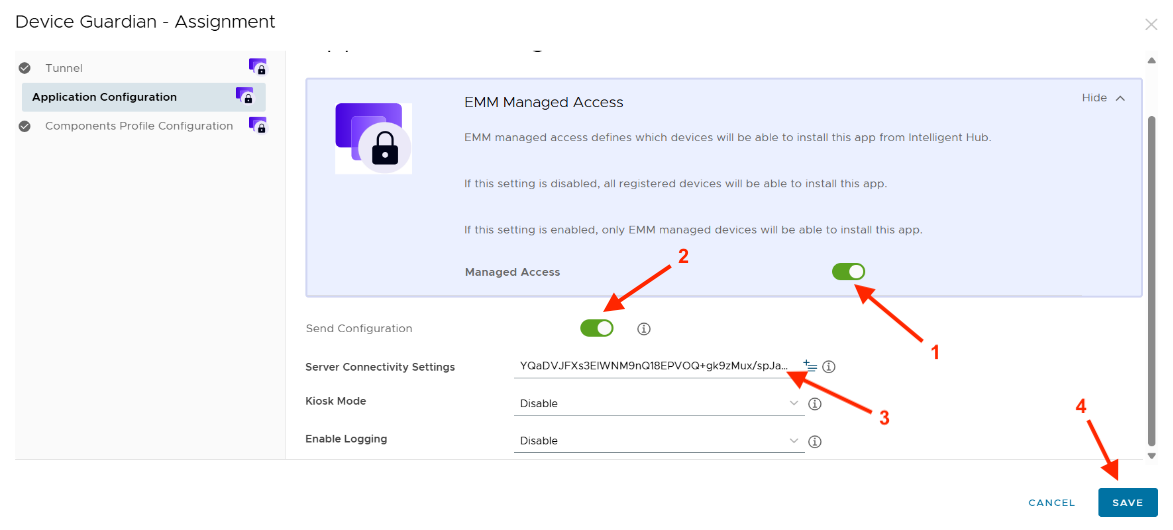 Follow these steps to install Device Guardian via Managed Configurations with Workspace ONE Unified Endpoint Management (UEM) and apply a policy that enrolls the device with the Device Guardian server.