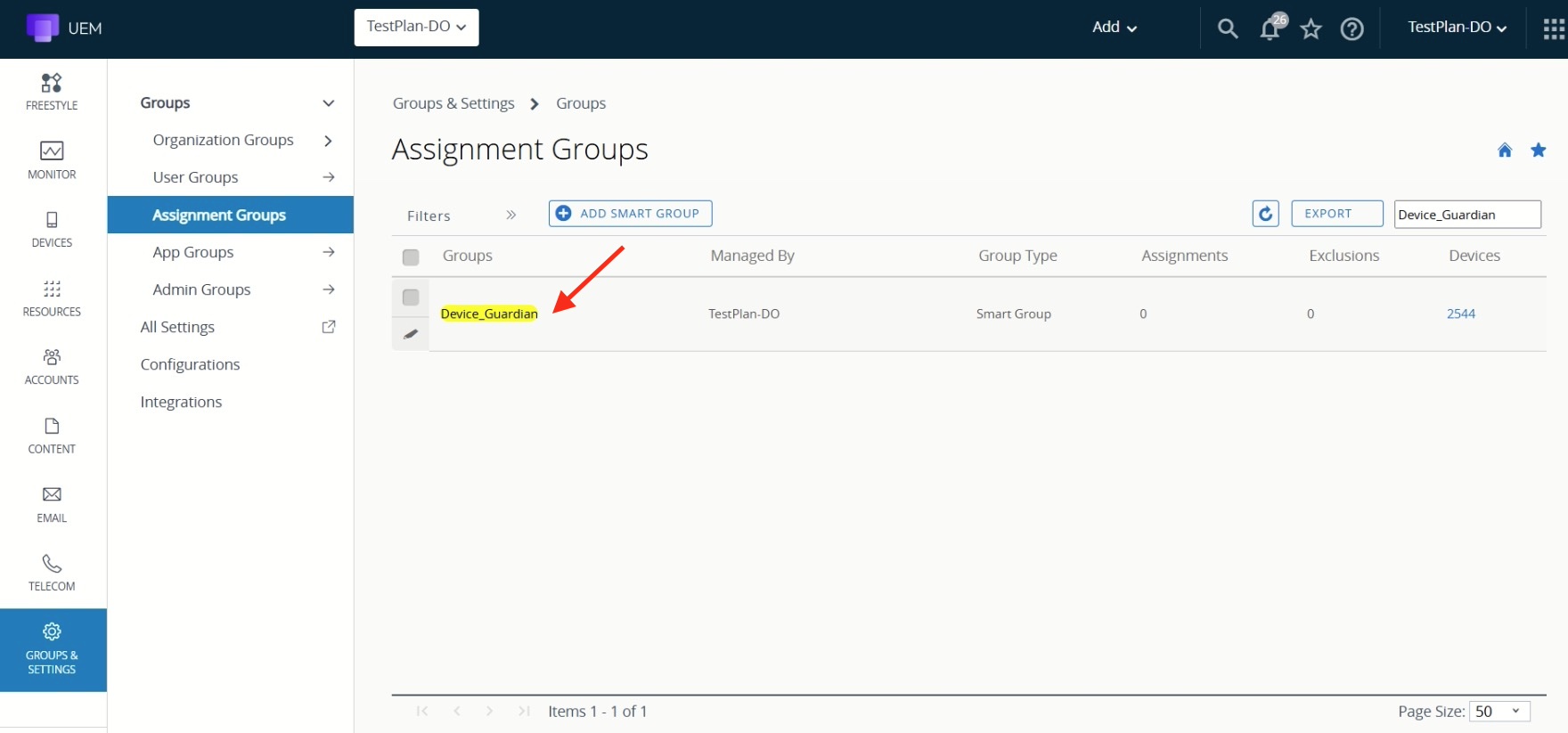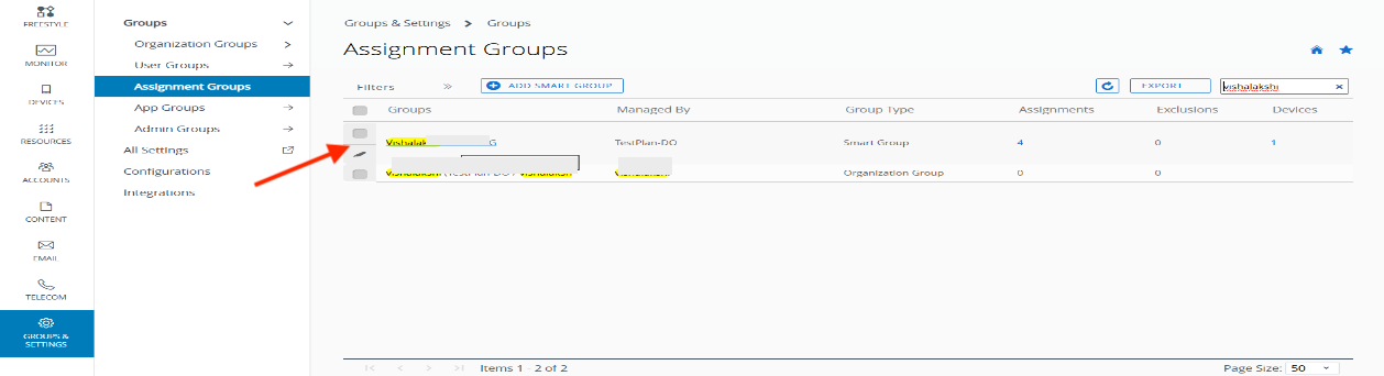 - From the left menu, click Groups & Settings > Assignment Groups. Click on the assignment group created.