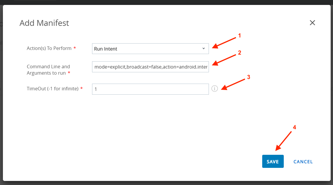 mode=explicit,broadcast=false,action=android.intent.action.MAIN,package=com.zebra.mdna.dg,class=com.zebra.mdna.dg.SplashActivityTimeOut: [Enter any timeout value.]