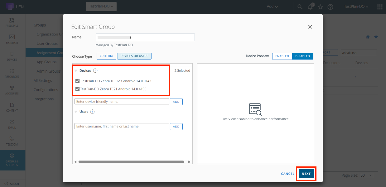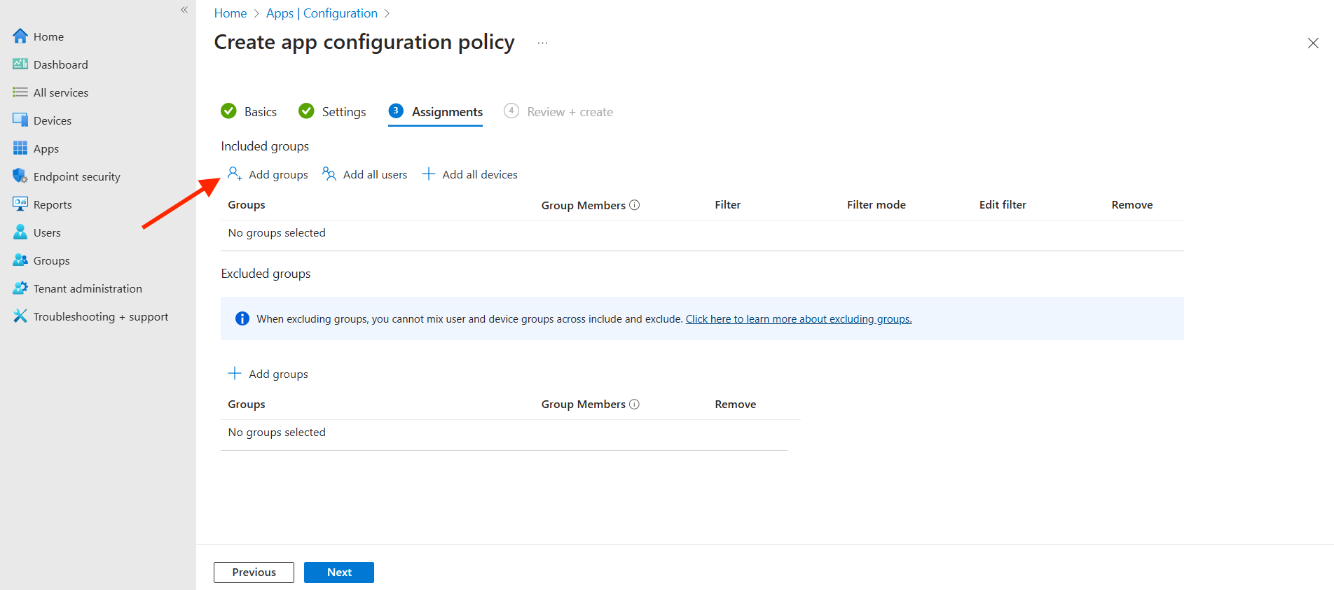 - Navigate to Groups & Settings > Assignment Groups. Select the group to apply the policy.
