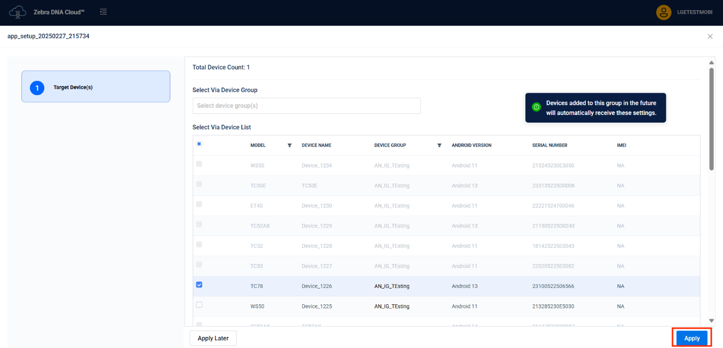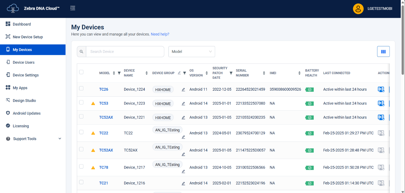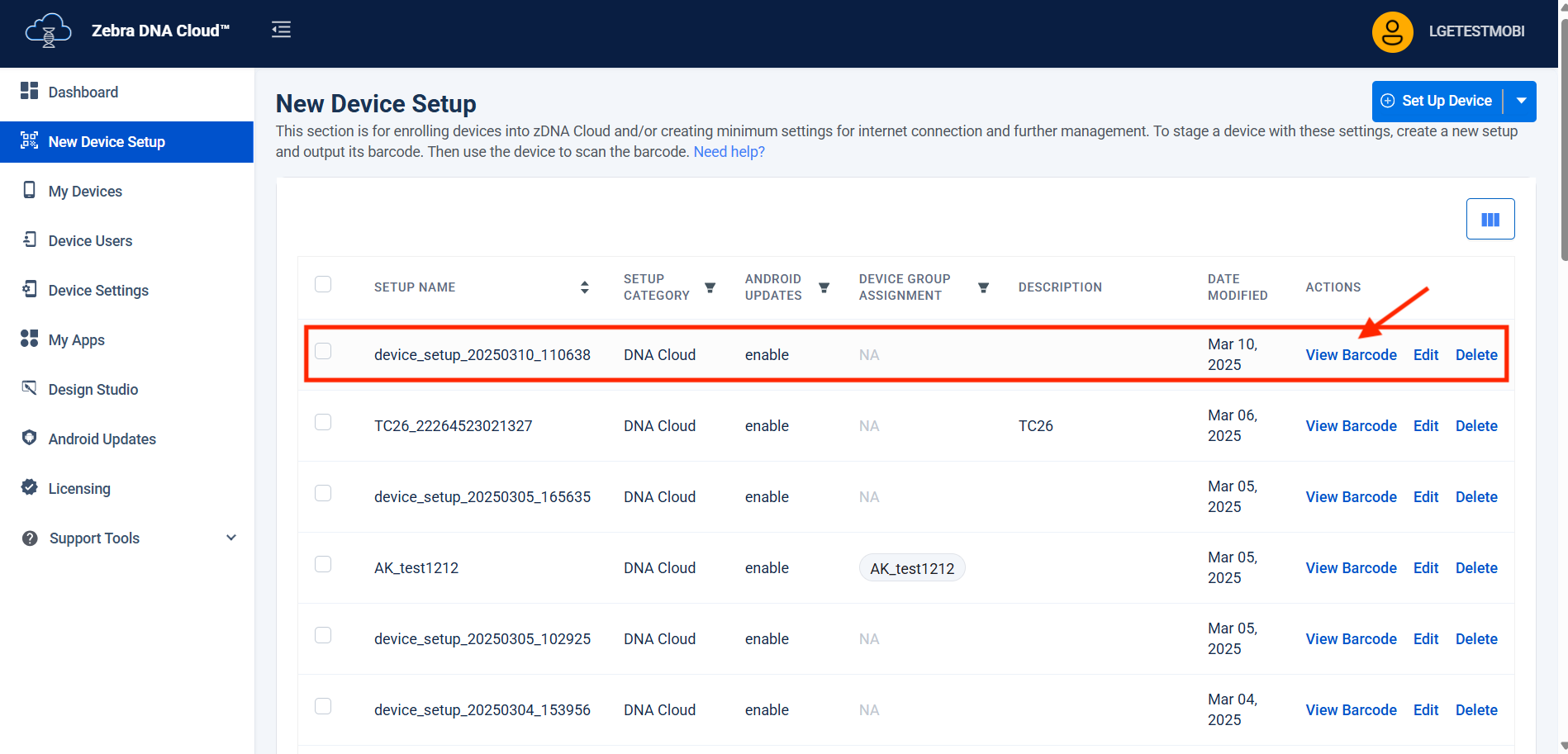- After staging is complete, in ZDNA Cloud, click on My Devices and verify that the the enrolled device is listed.