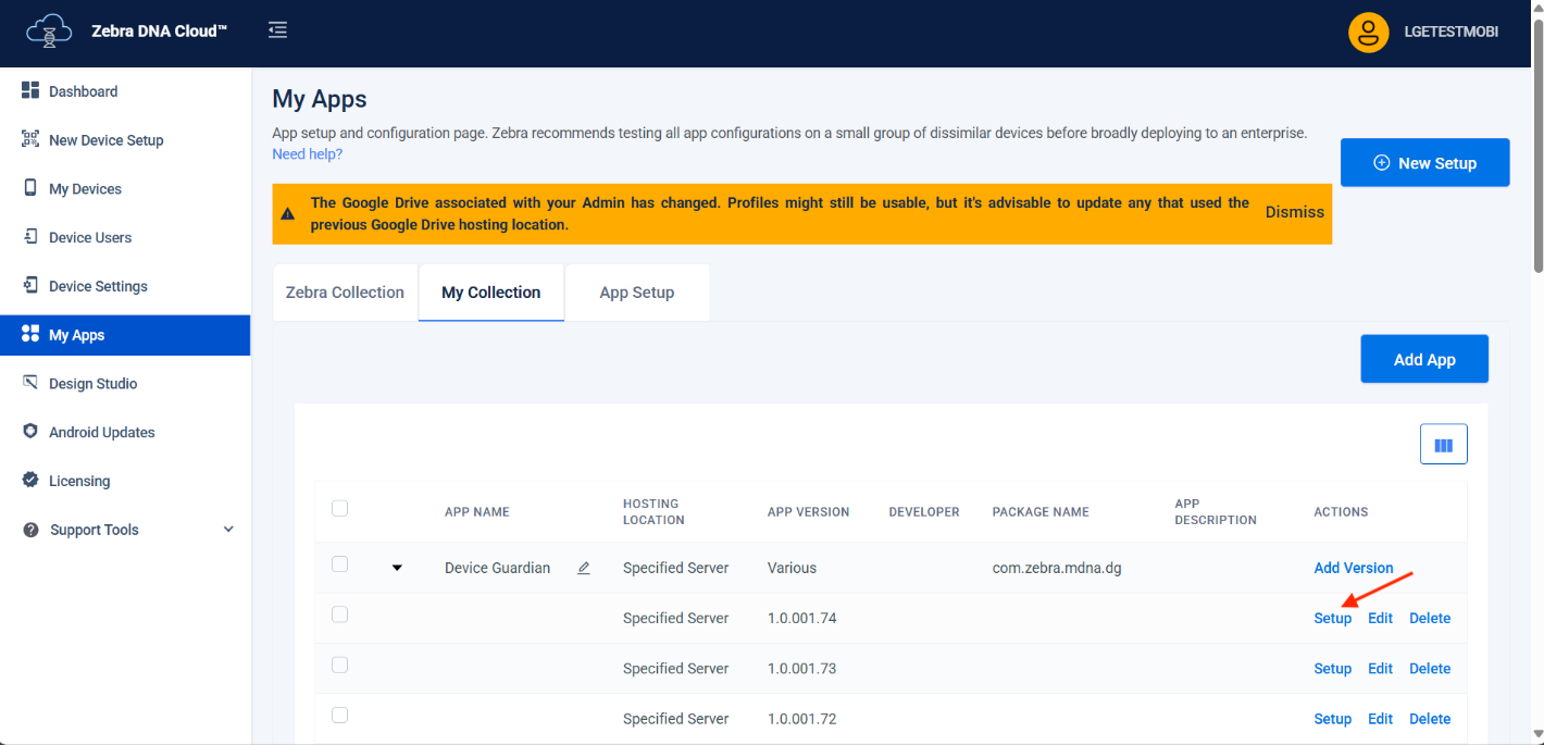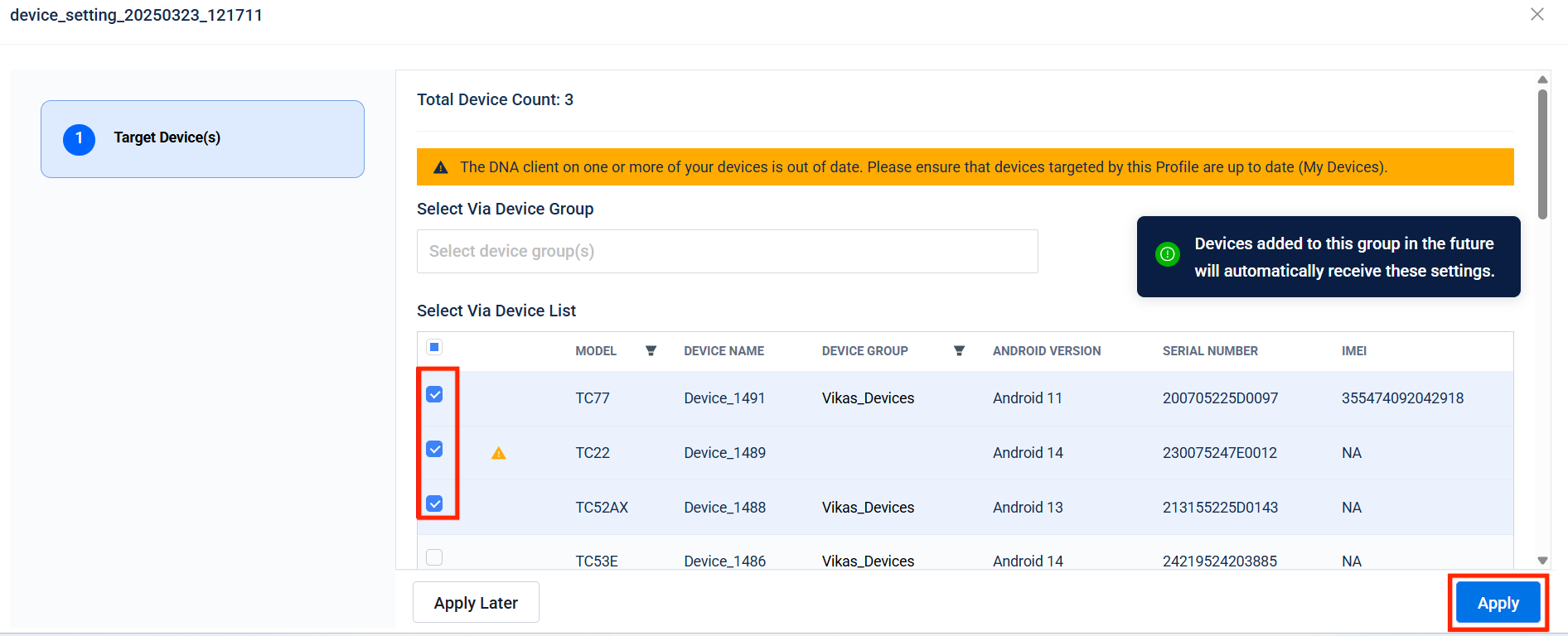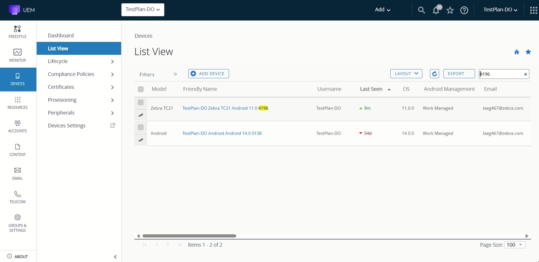 - After staging is complete, in ZDNA Cloud, click on My Devices and verify that the the enrolled device is listed.