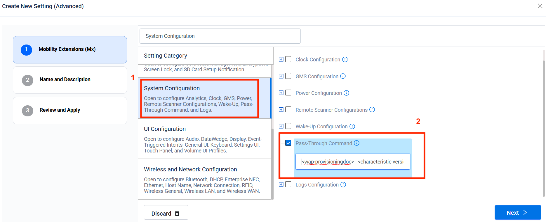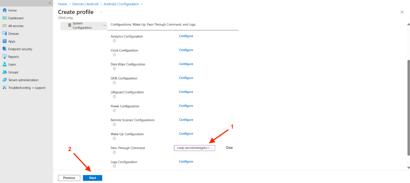 - Select System Configuration. Enable Pass-Through Command and paste the content from