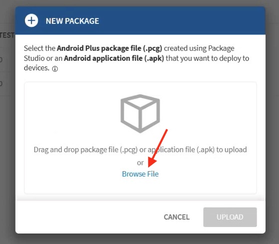 - Click Choose File. Select the Device Guardian .APK file to upload, then click Save.