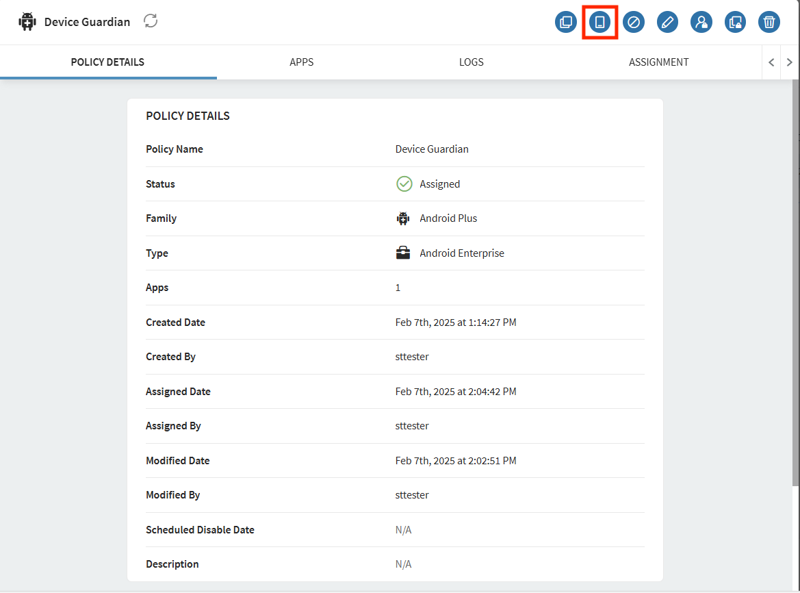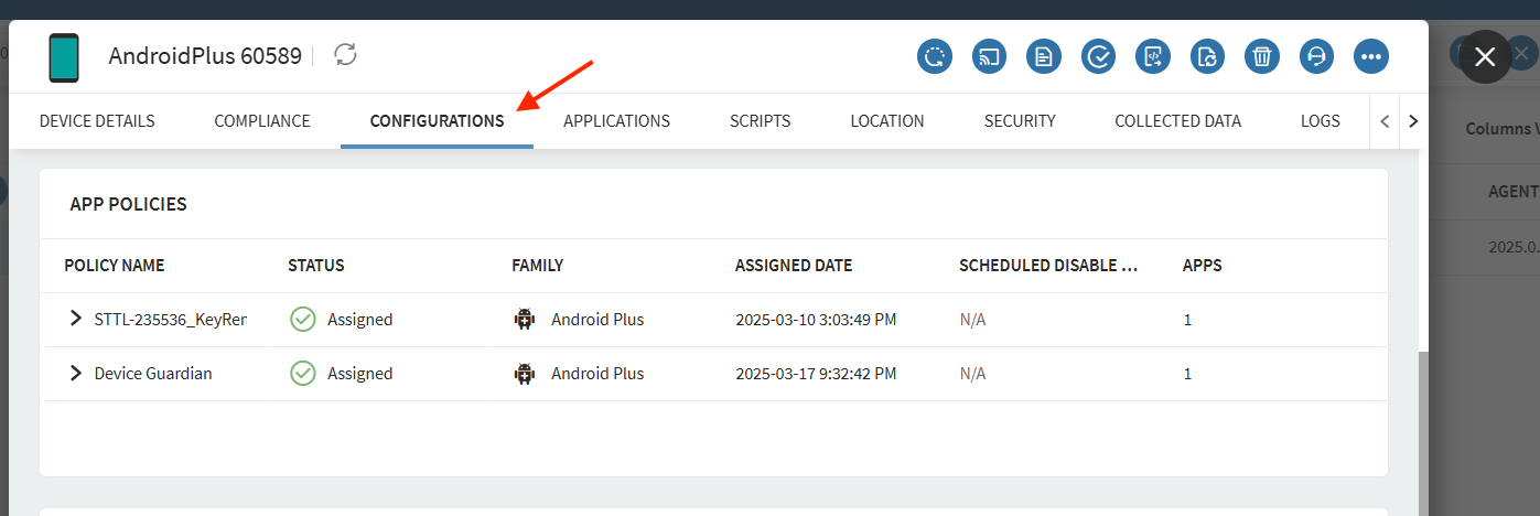 Create and apply a Device Guardian Managed Configurations policy, which installs Device Guardian on the device and enrolls it in the Device Guardian server: