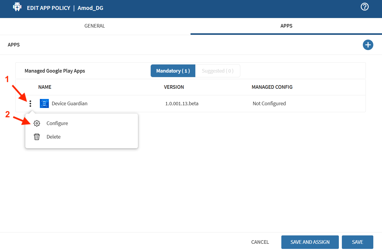 Follow these steps to install Device Guardian via Managed Configurations with 42Gears SureMDM and apply a policy that enrolls the device with the Device Guardian server.