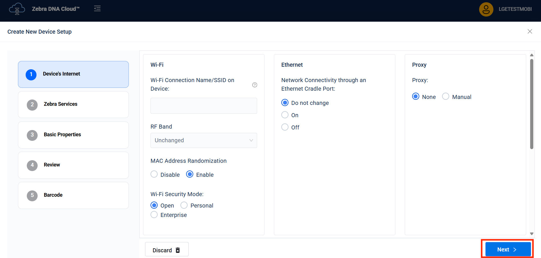 - Configure the device for enrollment. Enter the appropriate internet settings, then click Next.