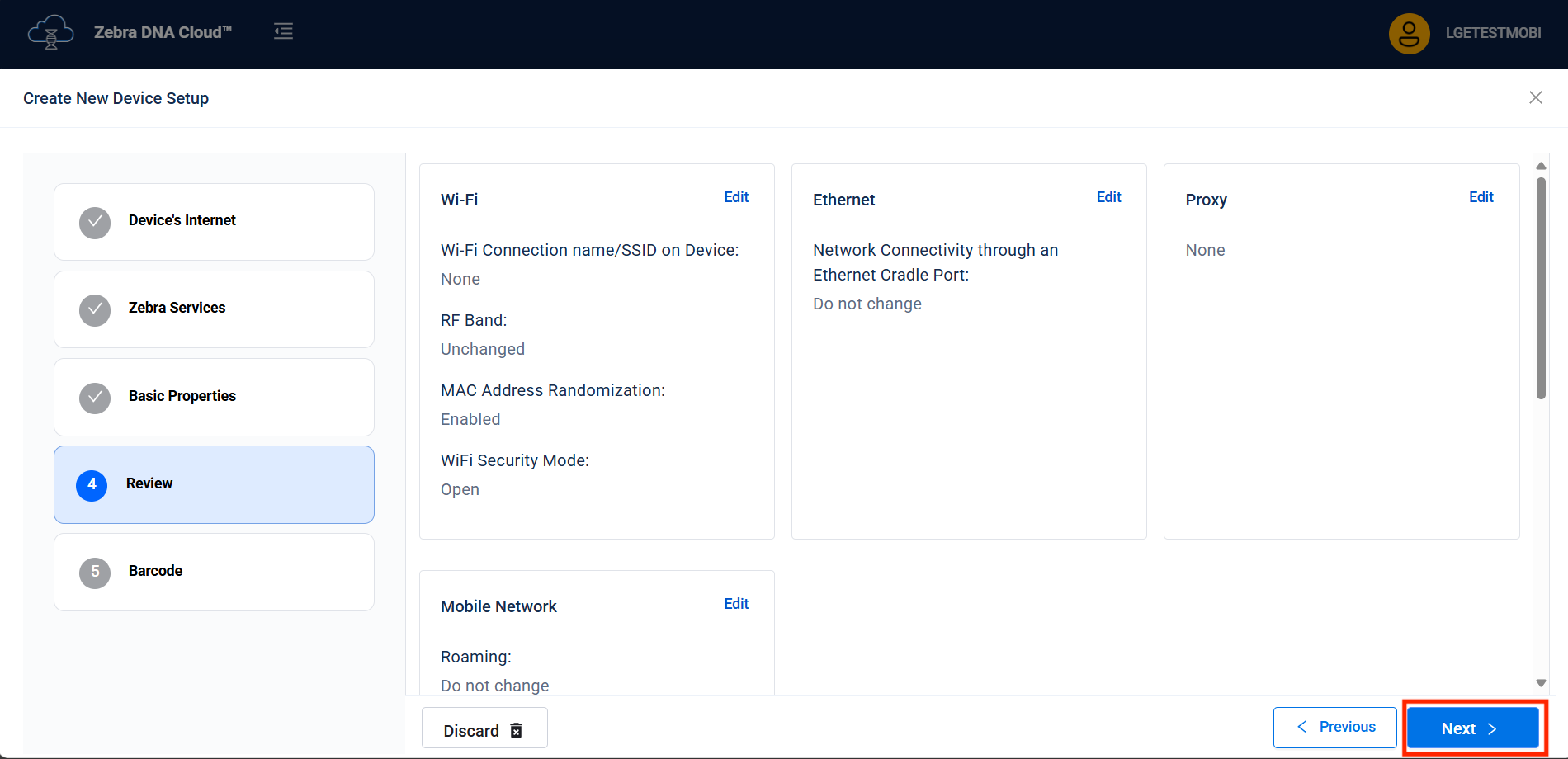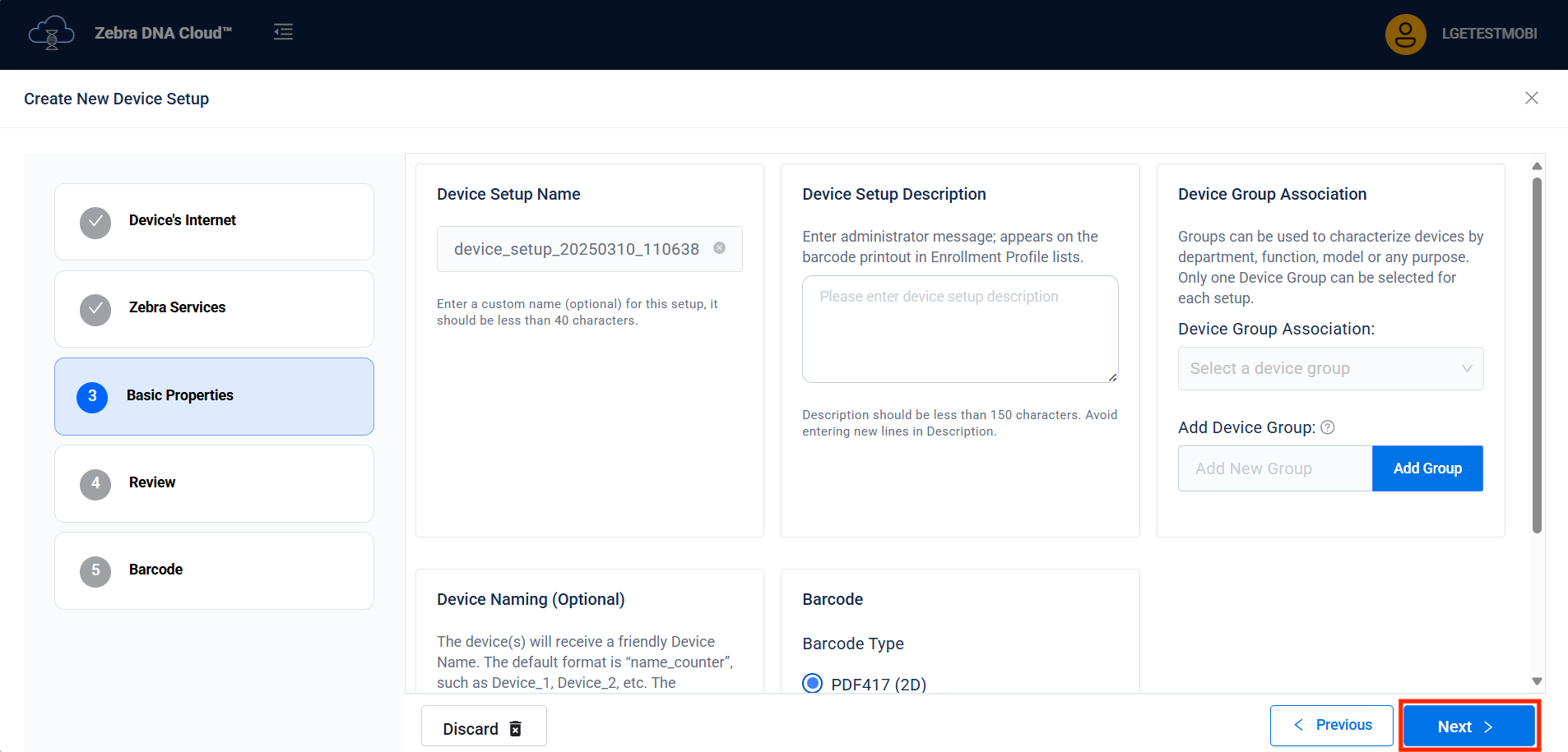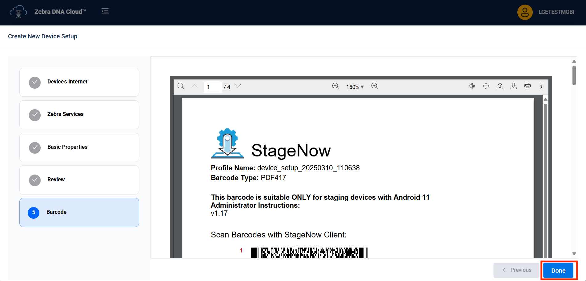 Create and apply the StageNow barcode for device enrollment in ZDNA Cloud: