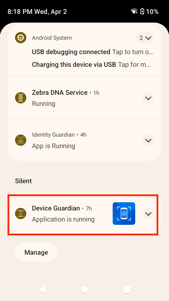 • Notifications received after successful installation and enrollment of the Device Guardian app can be dismissed.