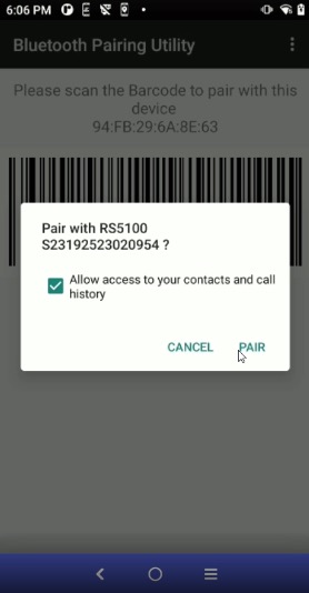 2. Use the Bluetooth scanner accessory to scan the barcode displayed. image