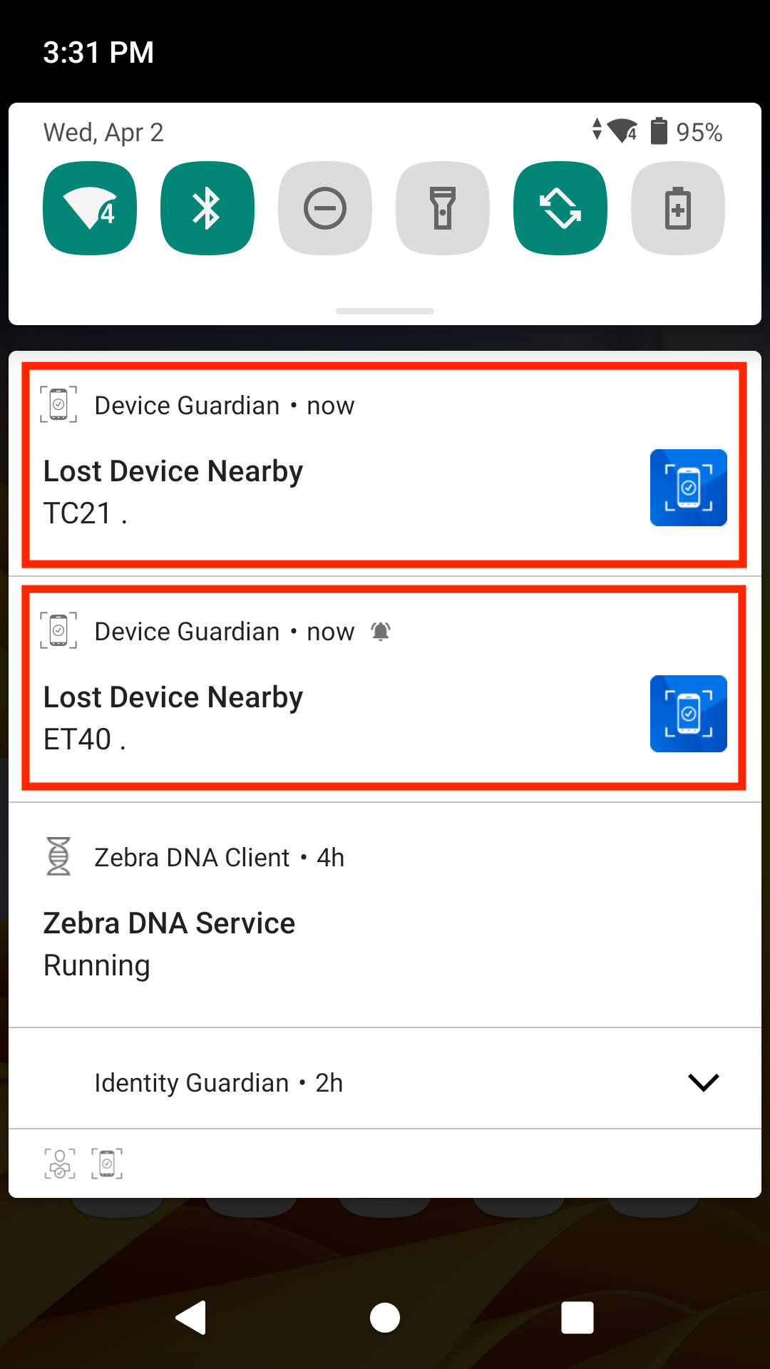 Android 14 introduces updates to notification behavior, enabling users to manually dismiss Device Guardian notifications from the device's notification drawer, especially in the following scenarios: