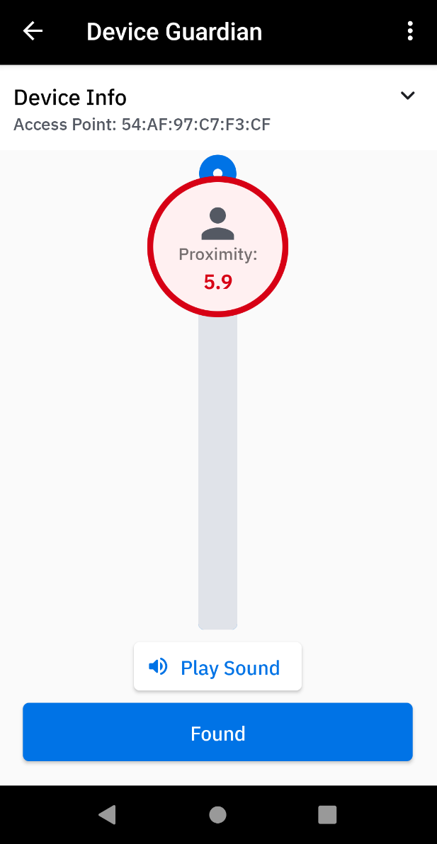 3. Use the proximity meter: The proximity meter indicates the how far or how close you are to the missing device. The numerical value decreases towards "0" as you get closer. Proximity meter state changes include: