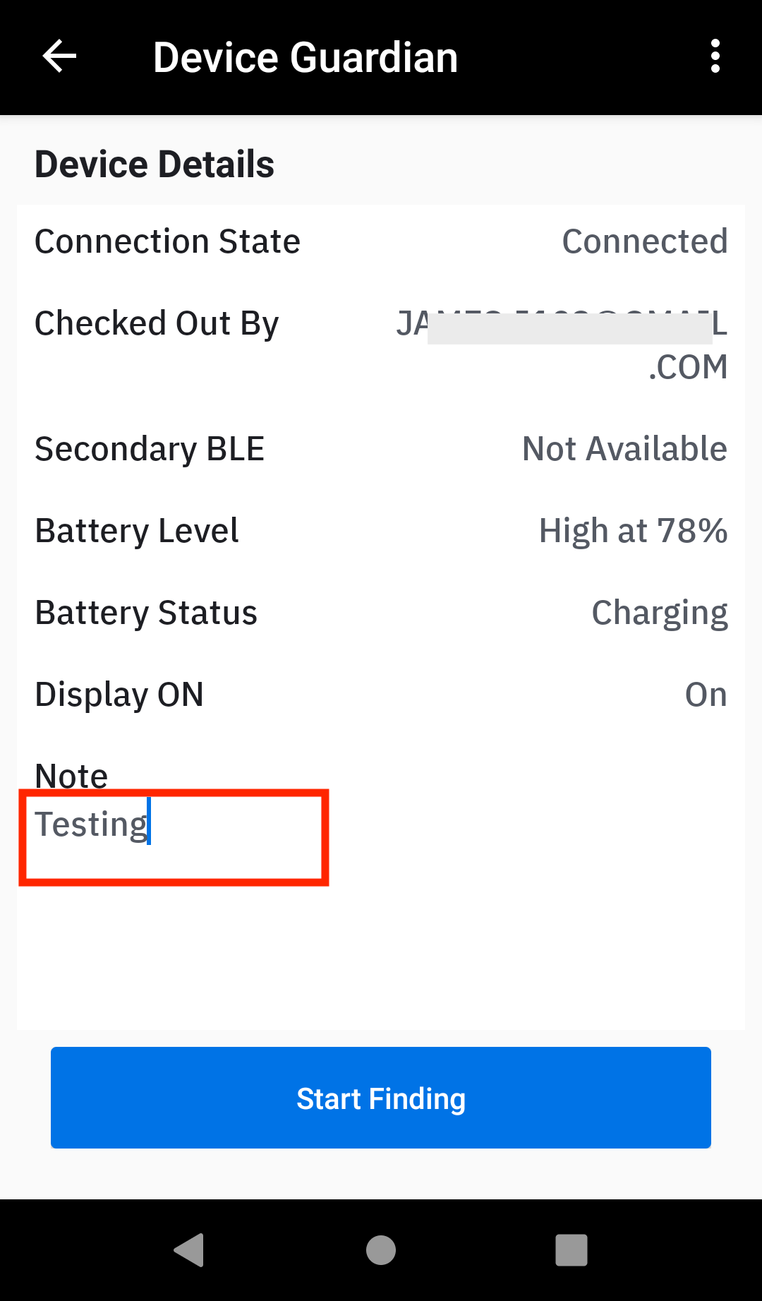 2. The Note section appears in the Device Details screen prompting to enter in text. imageEnter a note or comment