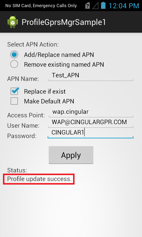 This sample application will allow you to Add/Replace named APN and remove existing named APN.