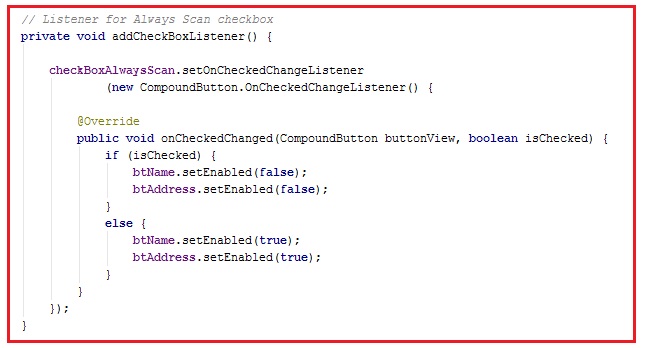 // CheckBox to indicate whether to perform a scan to get Bluetooth Name/Address of