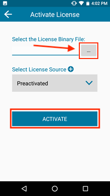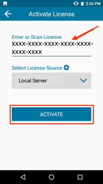 This section describes the process for activating a license on a single device running Android. To remotely activate multiple licenses for an entire organization, see the Mass Deployment section of this guide.
