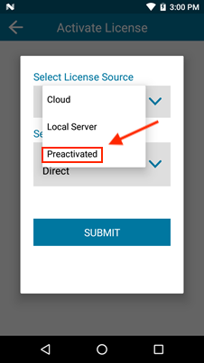 .BINfiles) to device(s). - In the Licensing app, select Preactivated from the License Source drop-down.