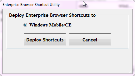 - Shortcut creation requires Enterprise Browser 1.3 (the later) on the deployment PC and the device(s).