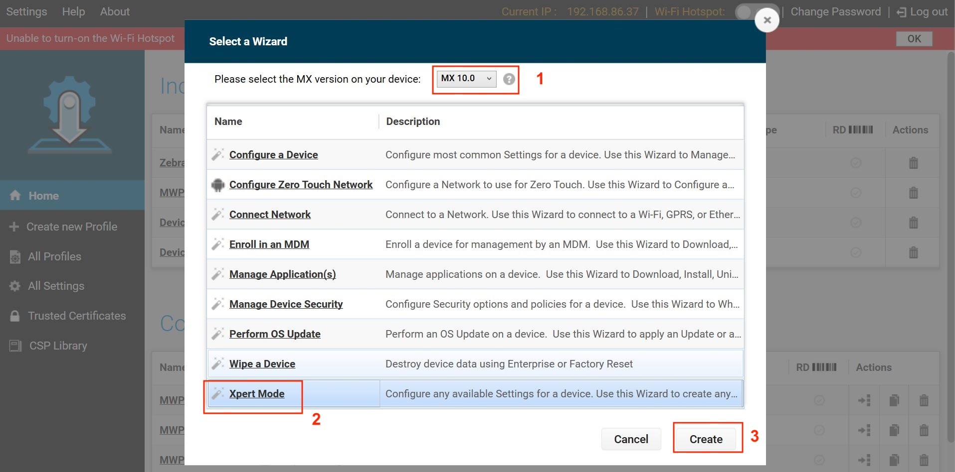- StageNow: Generate the barcode from the StageNow profile. Open StageNow client on the device and scan the barcode(s) generated from the installation, configuration and/or BLE profile.