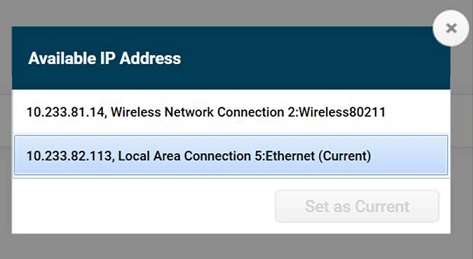 Select the IP, then select Set as Current. This IP address is retained in future operations, including after re-launch and system reboot.