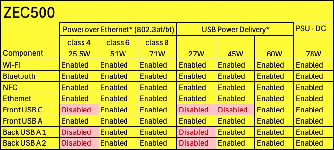 - The detection and discovery of the PoE power class (4, 6 or 8) occurs during ZEC500 boot-up process.