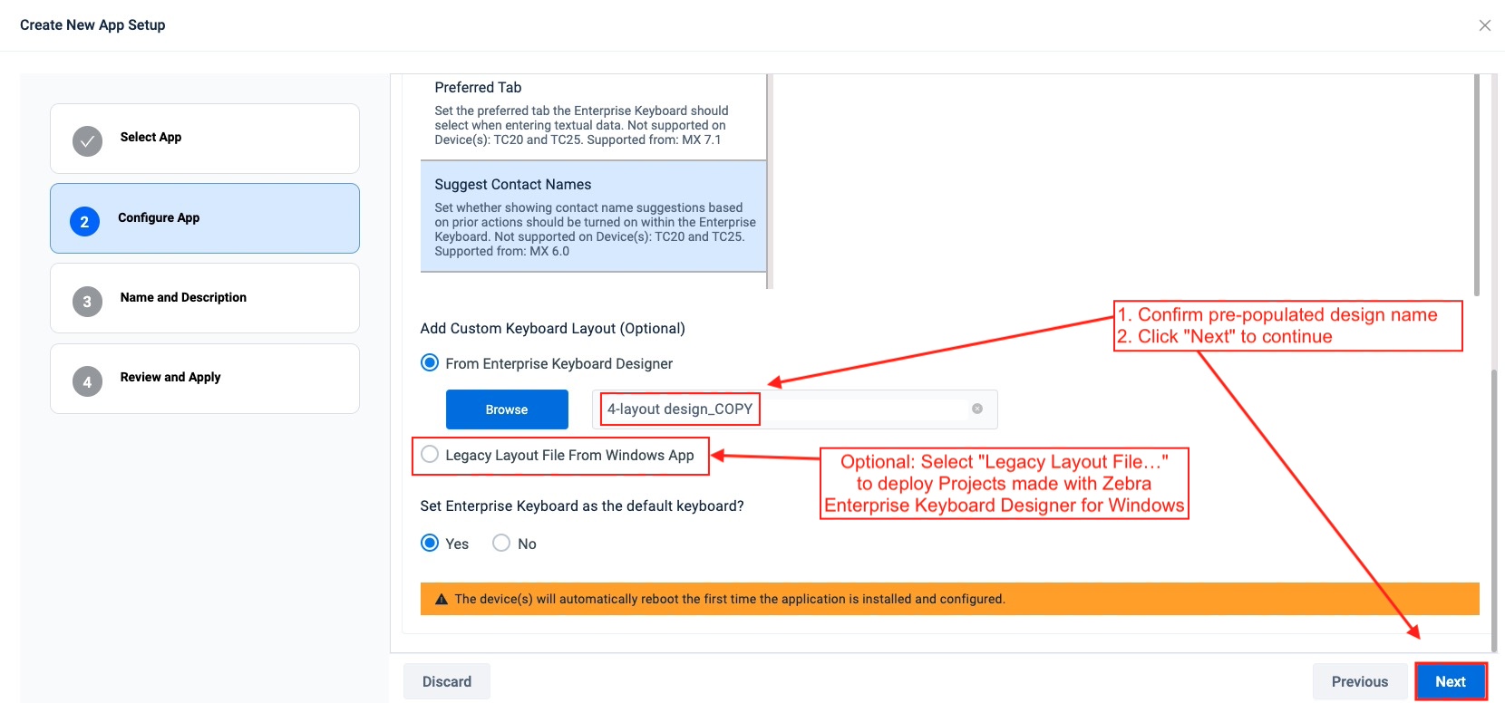 Click "Next" to continue.- Go to Zebra Collection App Setup, Step 6 to complete the process.
