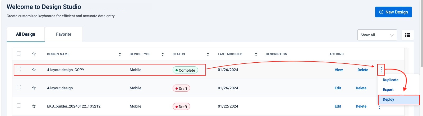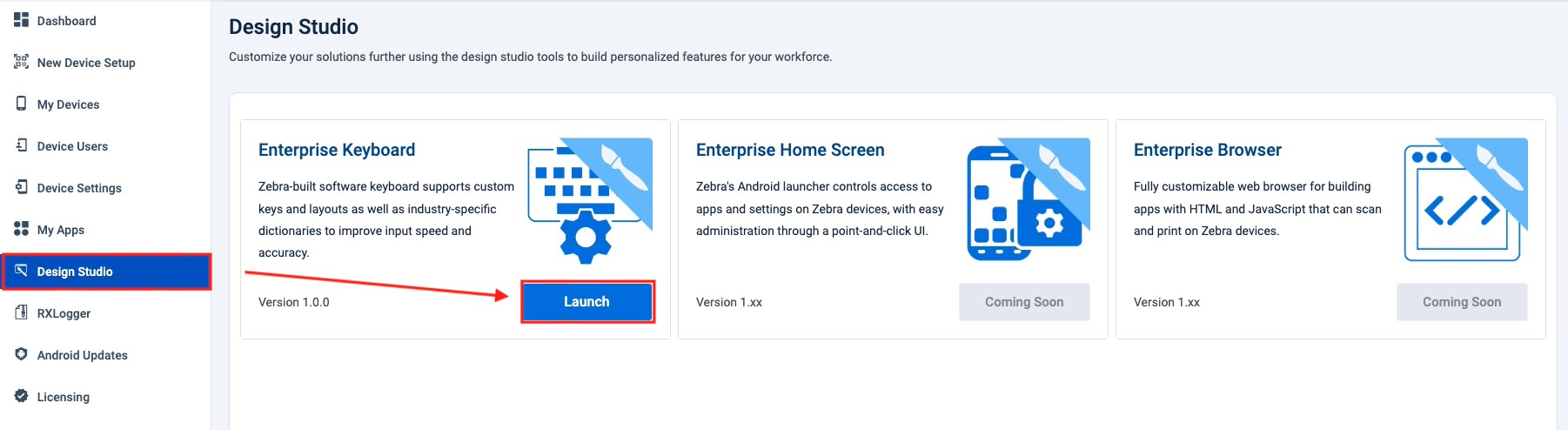 From the Design Studio section, launch the Enterprise Keyboard Design Studio utility: