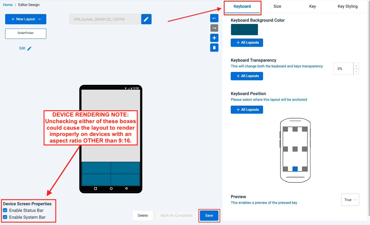 - To display EKB Design Studio layouts on a device, Enterprise Keyboard must be installed on that device and set as the default input source.