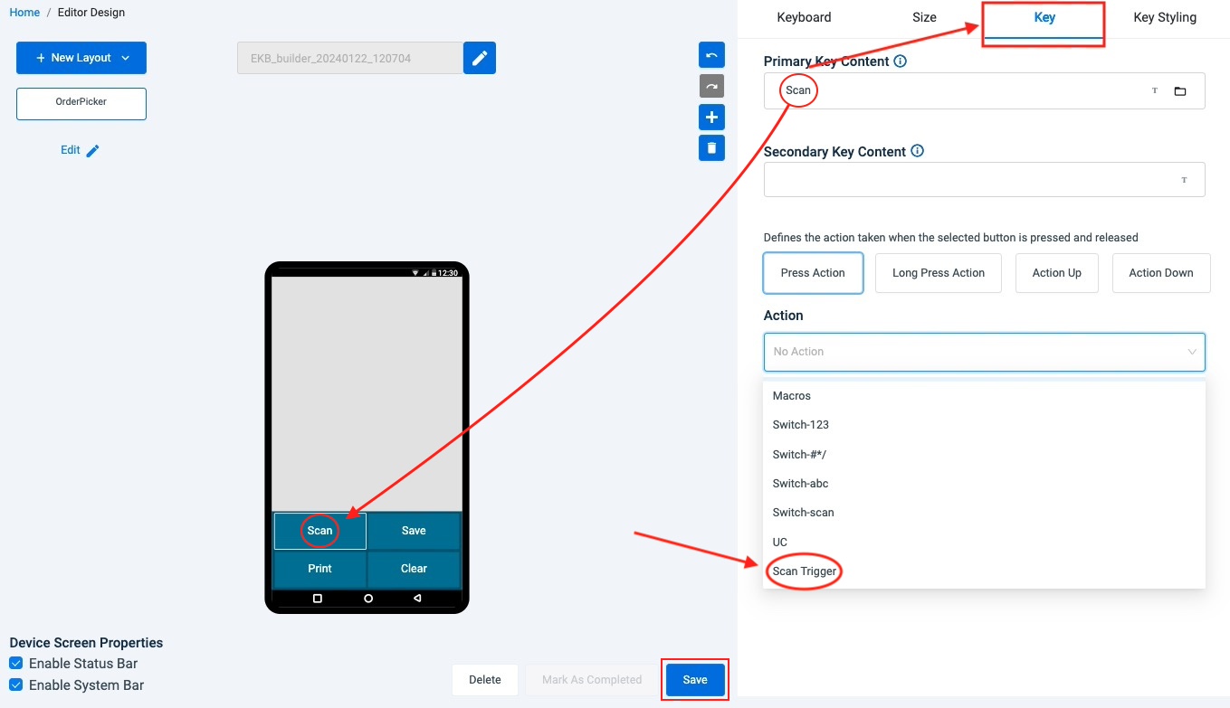 - The "Switch-Scan" Press Action (intended to invoke the EKB "scan" layout) sometimes brings up a different layout.