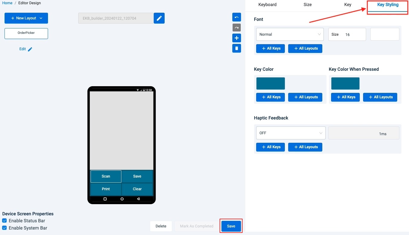 Click "Save" button when finished. Then select "Key Styling" tab to continue.