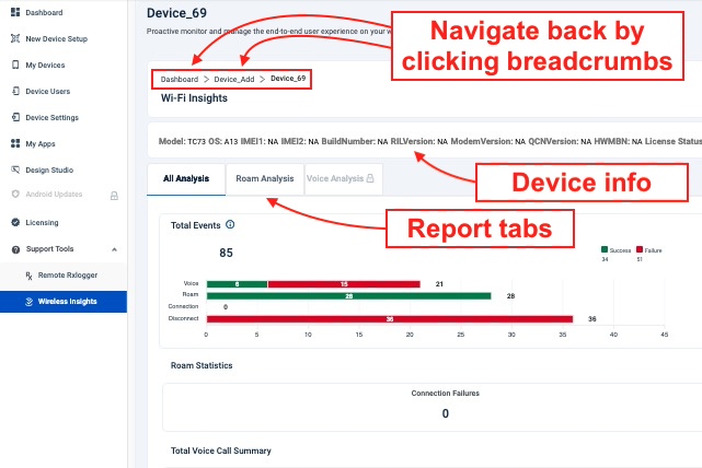 Click "Wireless Insights" to view the interactive Wireless Insights Dashboard.