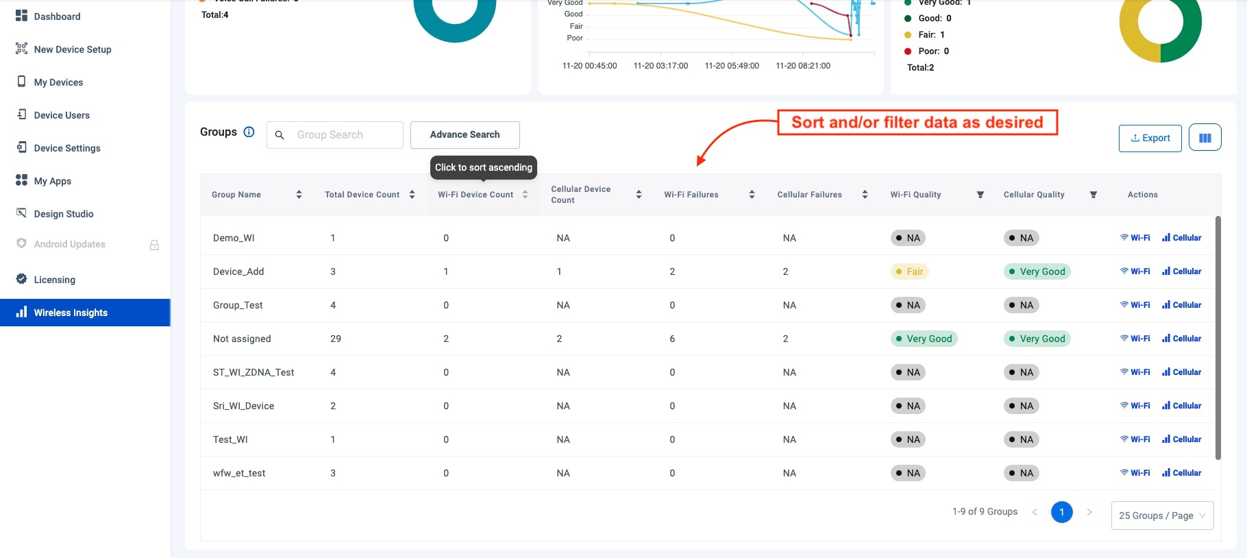 Scroll down from Dashboard to view reports for the Device Group(s) selected in previous step.